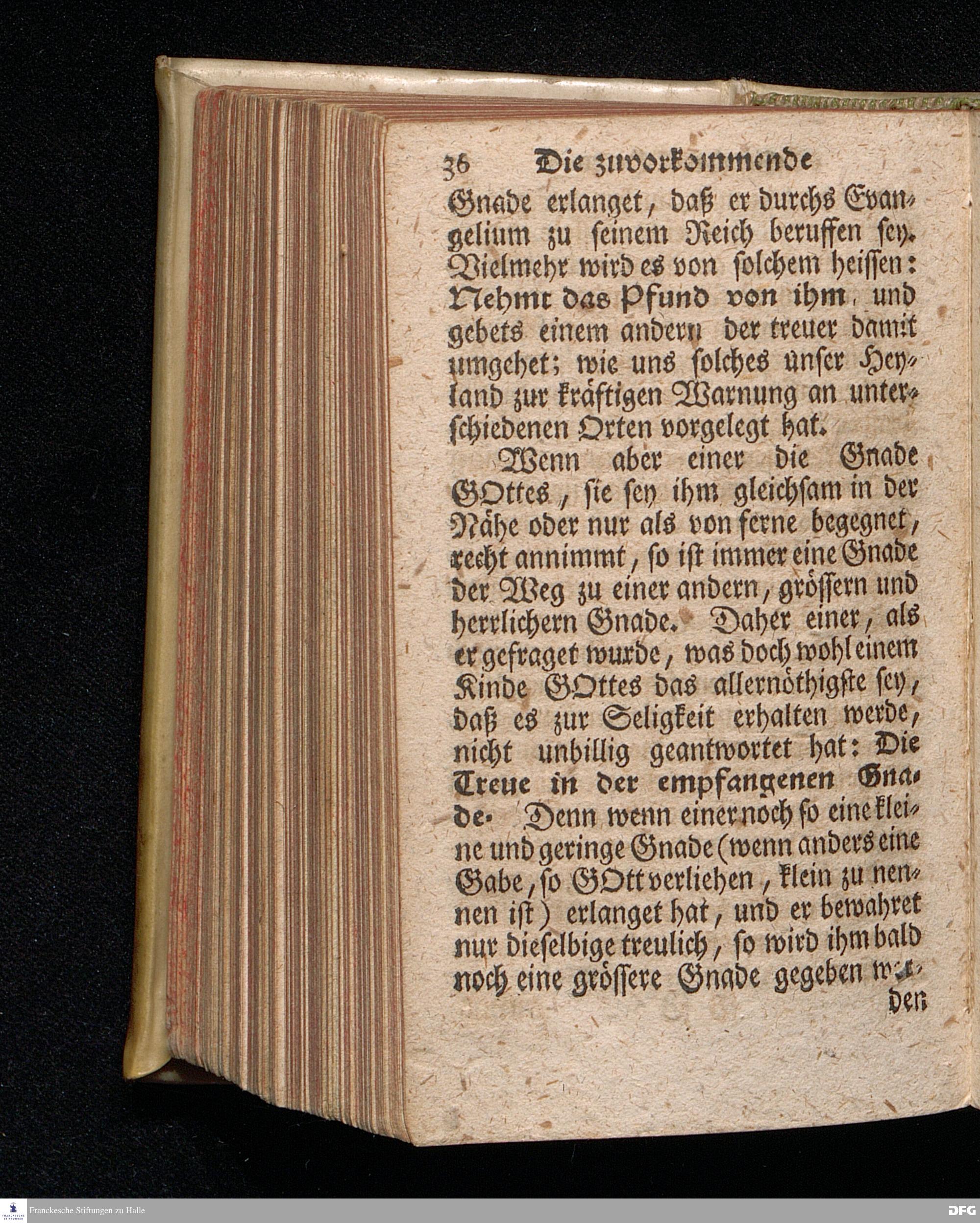 Die Zuvorkommende Gnade GOttes, In einer Vor dem hier versammleten Hoch=Fürstl.Dessauischen Regiment am XVI.Sonntag nach Trinit.1721. gehaltenen Predigt aus dem ordentlichen Evangelio Luc.VII, 11-17. In der Schul=Kirche zu Halle vorgestellet von August Hermann Francken, S.Theol.Prof.Past.Vlr.& Schol. HALLE, gedruckt im Wäysen=Hause, 1729.