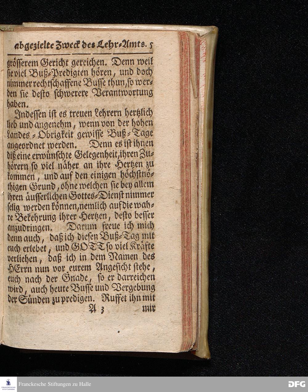Der von dem HErrn JEsu Abgezielte Zweck des Lehr=Amts / Oder, Warum der HErr JEsus seine Knechte zu den Menschen sendet / und ihnen dieselben zu Lehrern verordnet, Aus der Apostel Gesch. 26 / 17.18. [Bibelzitat.] Am I.Buß=Tage den 3.Mart.1717. In der St.Ulrichs Kirche in Halle vorgestellet von August Hermann Francken / S.Th.Prof.& Past.zu St.Ulrich, und des Gymnasii Scholarcha, h.t. Acad.Pro-Rectore. Der Jugend in den Schulen des Wäysenhauses nach gehaltenem Examine den 8.Mai.gedachten Jahrs ausgetheilet. HALLE, in Verlegung des Wäysenhauses, 1717.