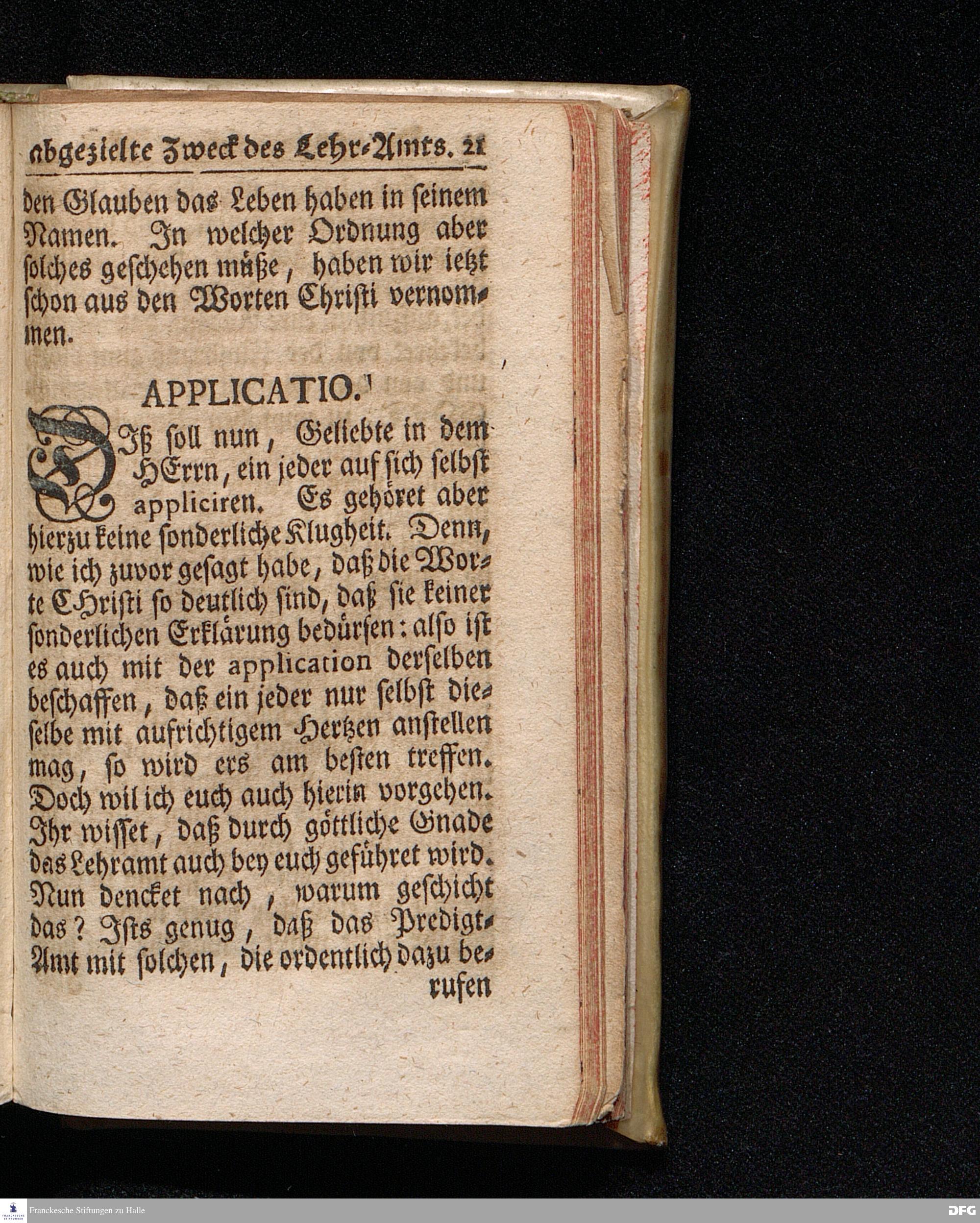 Der von dem HErrn JEsu Abgezielte Zweck des Lehr=Amts / Oder, Warum der HErr JEsus seine Knechte zu den Menschen sendet / und ihnen dieselben zu Lehrern verordnet, Aus der Apostel Gesch. 26 / 17.18. [Bibelzitat.] Am I.Buß=Tage den 3.Mart.1717. In der St.Ulrichs Kirche in Halle vorgestellet von August Hermann Francken / S.Th.Prof.& Past.zu St.Ulrich, und des Gymnasii Scholarcha, h.t. Acad.Pro-Rectore. Der Jugend in den Schulen des Wäysenhauses nach gehaltenem Examine den 8.Mai.gedachten Jahrs ausgetheilet. HALLE, in Verlegung des Wäysenhauses, 1717.