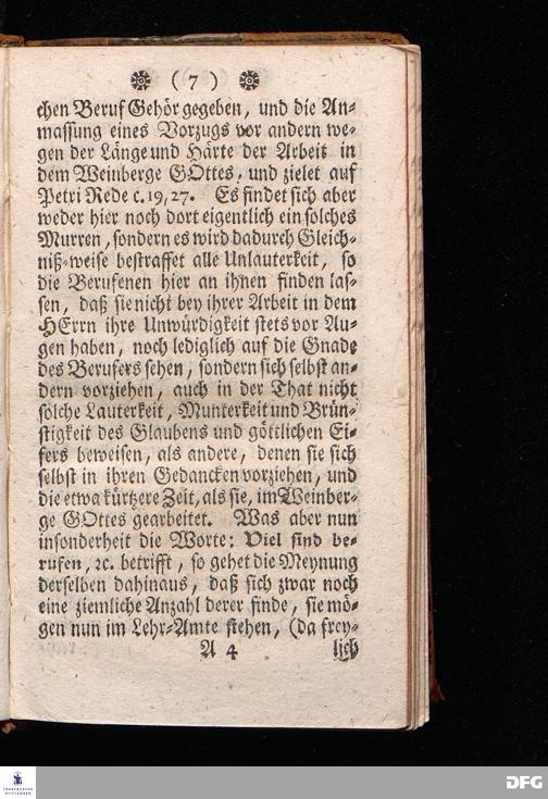 Erklärung des Spruchs Matth. 20 / 16. [Viele sind berufen / aber wenig sind auserwählet.] Auf dem Wäysen=Hause zu Glaucha An Halle Den 8.Jul.1711. ertheilet Von August Hermann Francken / S.Th.P.Ord.& Past.Glauch. Dritte Auflage. HALLE, In Verlegung des Wäysen=Hauses. MDCCXXIII.