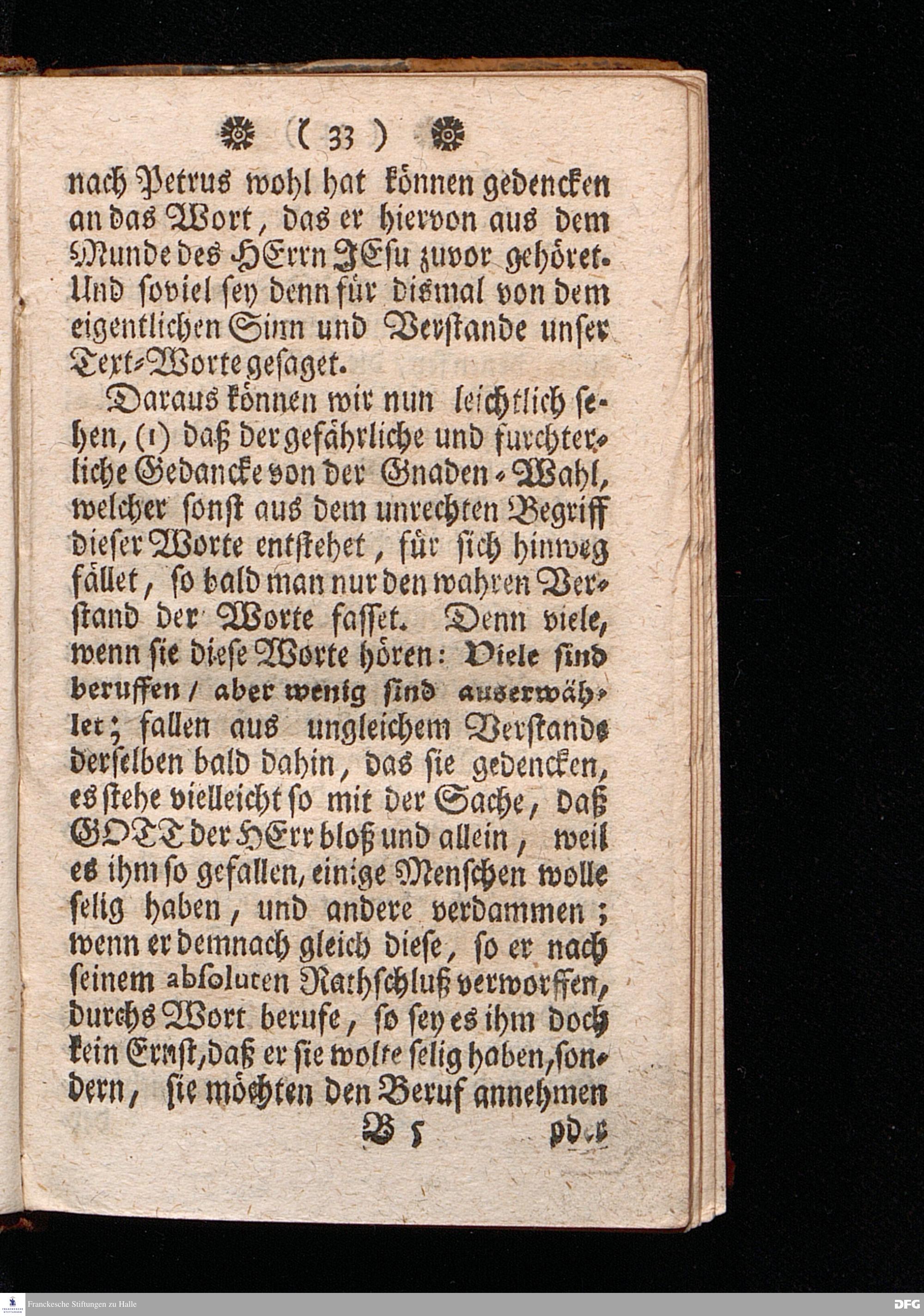 Erklärung des Spruchs Matth. 20 / 16. [Viele sind berufen / aber wenig sind auserwählet.] Auf dem Wäysen=Hause zu Glaucha An Halle Den 8.Jul.1711. ertheilet Von August Hermann Francken / S.Th.P.Ord.& Past.Glauch. Dritte Auflage. HALLE, In Verlegung des Wäysen=Hauses. MDCCXXIII.