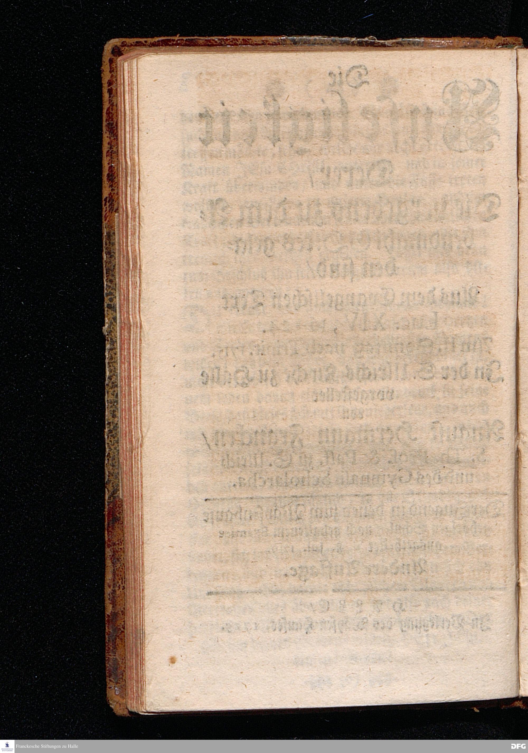 Die Unseligkeit Derer / Die vergebens zu dem Abendmahl GOttes geladen sind / Aus dem Evangelischen Text Luc.XIV, 16--24. Am II.Sonntag nach Trinit. 1715. In der S.Ulrichs=Kirche zu Halle vorgestellet von August Hermann Francken / S.Th.Prof.& Past.zu S.Ulrich und des Gymnasii Scholarcha. Der Jugend in denen zum Wäysenhause gehörigen Schulen nach gehaltenem Examine ausgetheilet d.8.Jul.1719. Andere Auflage. HALLE / In Verlegung des Wäysenhauses. 1729.