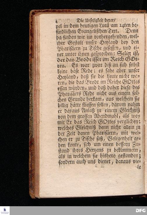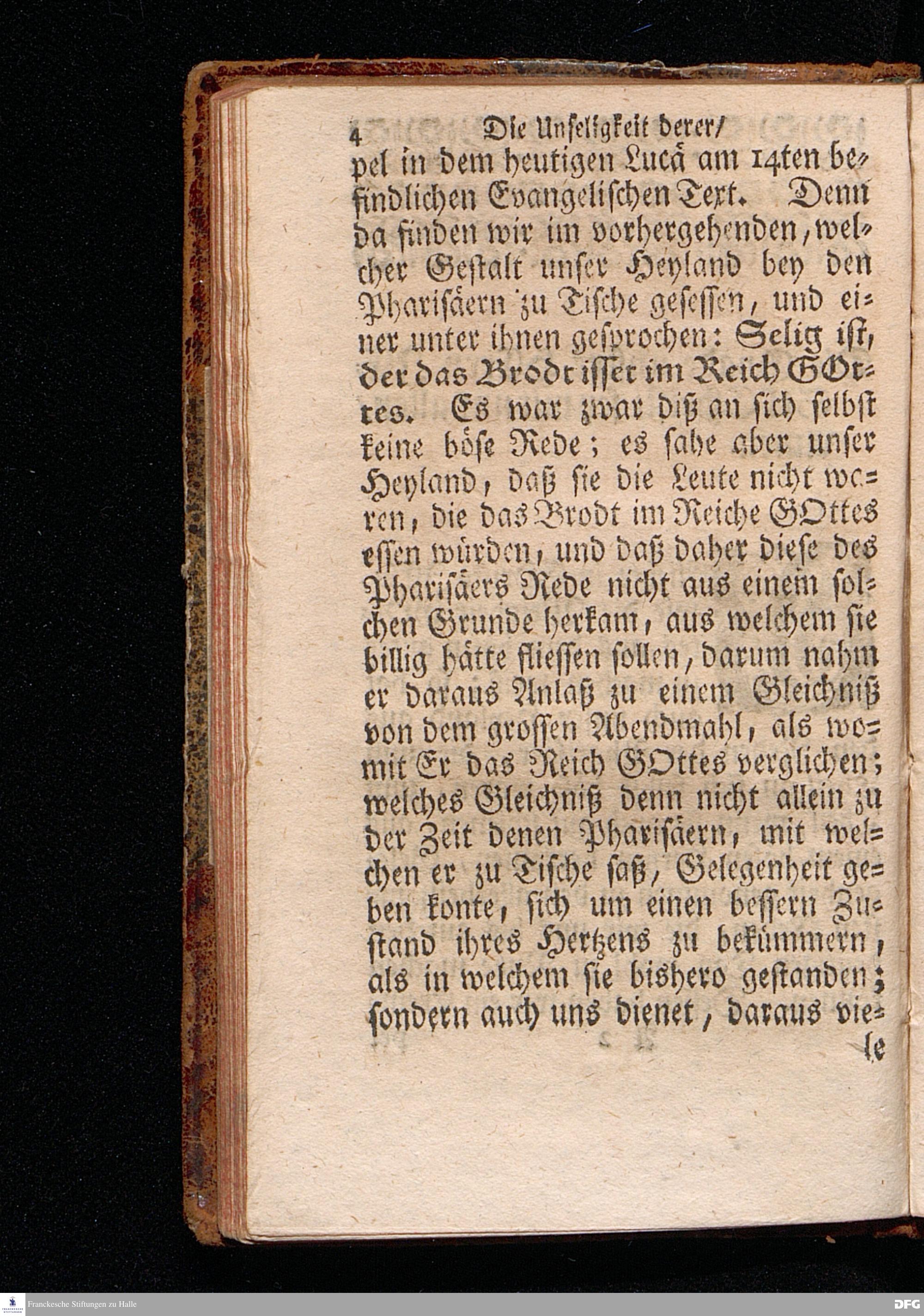 Die Unseligkeit Derer / Die vergebens zu dem Abendmahl GOttes geladen sind / Aus dem Evangelischen Text Luc.XIV, 16--24. Am II.Sonntag nach Trinit. 1715. In der S.Ulrichs=Kirche zu Halle vorgestellet von August Hermann Francken / S.Th.Prof.& Past.zu S.Ulrich und des Gymnasii Scholarcha. Der Jugend in denen zum Wäysenhause gehörigen Schulen nach gehaltenem Examine ausgetheilet d.8.Jul.1719. Andere Auflage. HALLE / In Verlegung des Wäysenhauses. 1729.