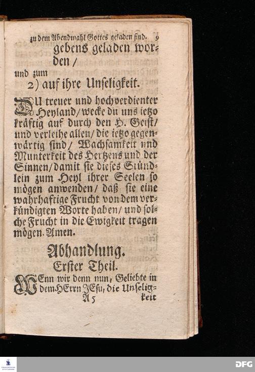 Die Unseligkeit Derer / Die vergebens zu dem Abendmahl GOttes geladen sind / Aus dem Evangelischen Text Luc.XIV, 16--24. Am II.Sonntag nach Trinit. 1715. In der S.Ulrichs=Kirche zu Halle vorgestellet von August Hermann Francken / S.Th.Prof.& Past.zu S.Ulrich und des Gymnasii Scholarcha. Der Jugend in denen zum Wäysenhause gehörigen Schulen nach gehaltenem Examine ausgetheilet d.8.Jul.1719. Andere Auflage. HALLE / In Verlegung des Wäysenhauses. 1729.