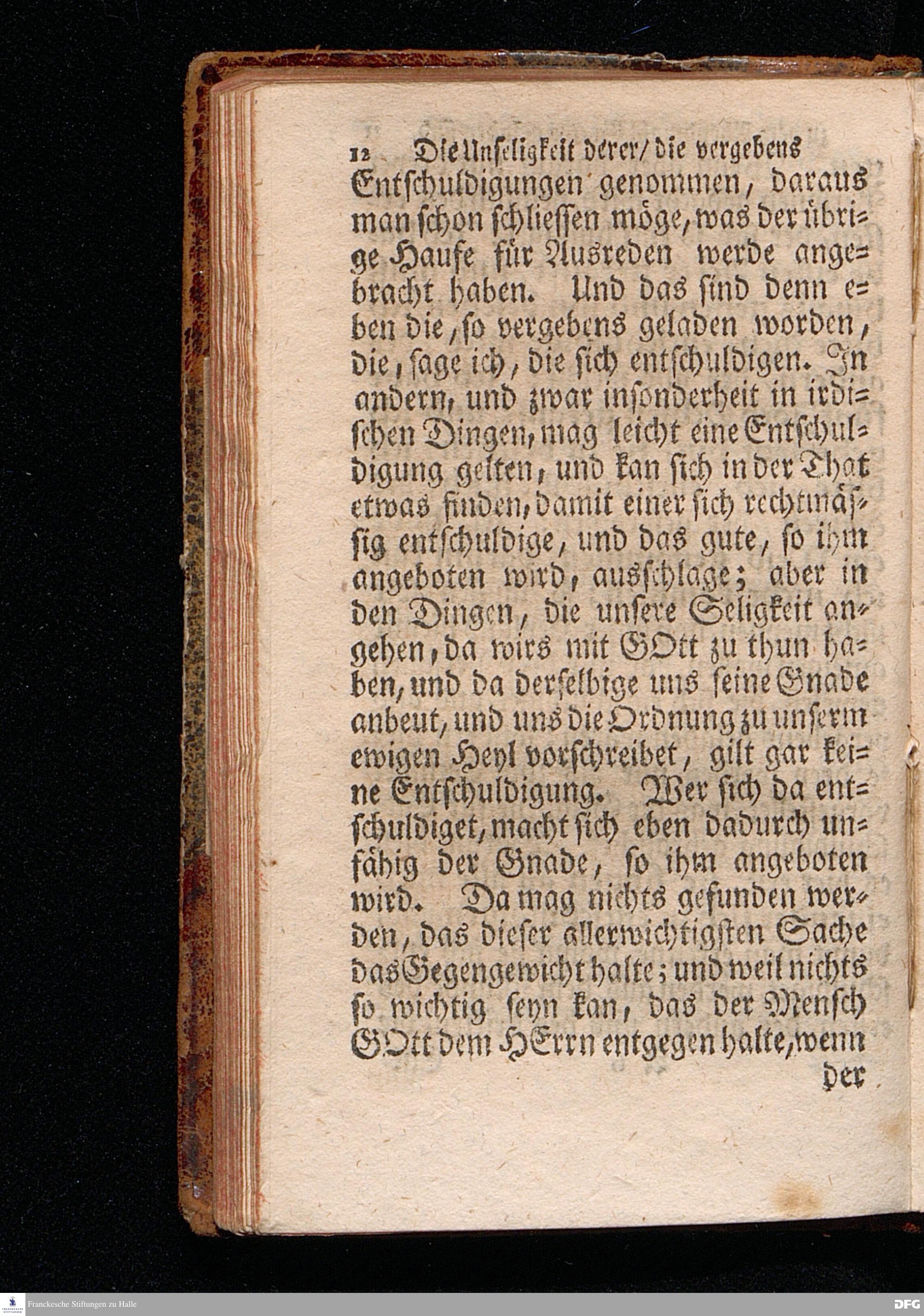 Die Unseligkeit Derer / Die vergebens zu dem Abendmahl GOttes geladen sind / Aus dem Evangelischen Text Luc.XIV, 16--24. Am II.Sonntag nach Trinit. 1715. In der S.Ulrichs=Kirche zu Halle vorgestellet von August Hermann Francken / S.Th.Prof.& Past.zu S.Ulrich und des Gymnasii Scholarcha. Der Jugend in denen zum Wäysenhause gehörigen Schulen nach gehaltenem Examine ausgetheilet d.8.Jul.1719. Andere Auflage. HALLE / In Verlegung des Wäysenhauses. 1729.