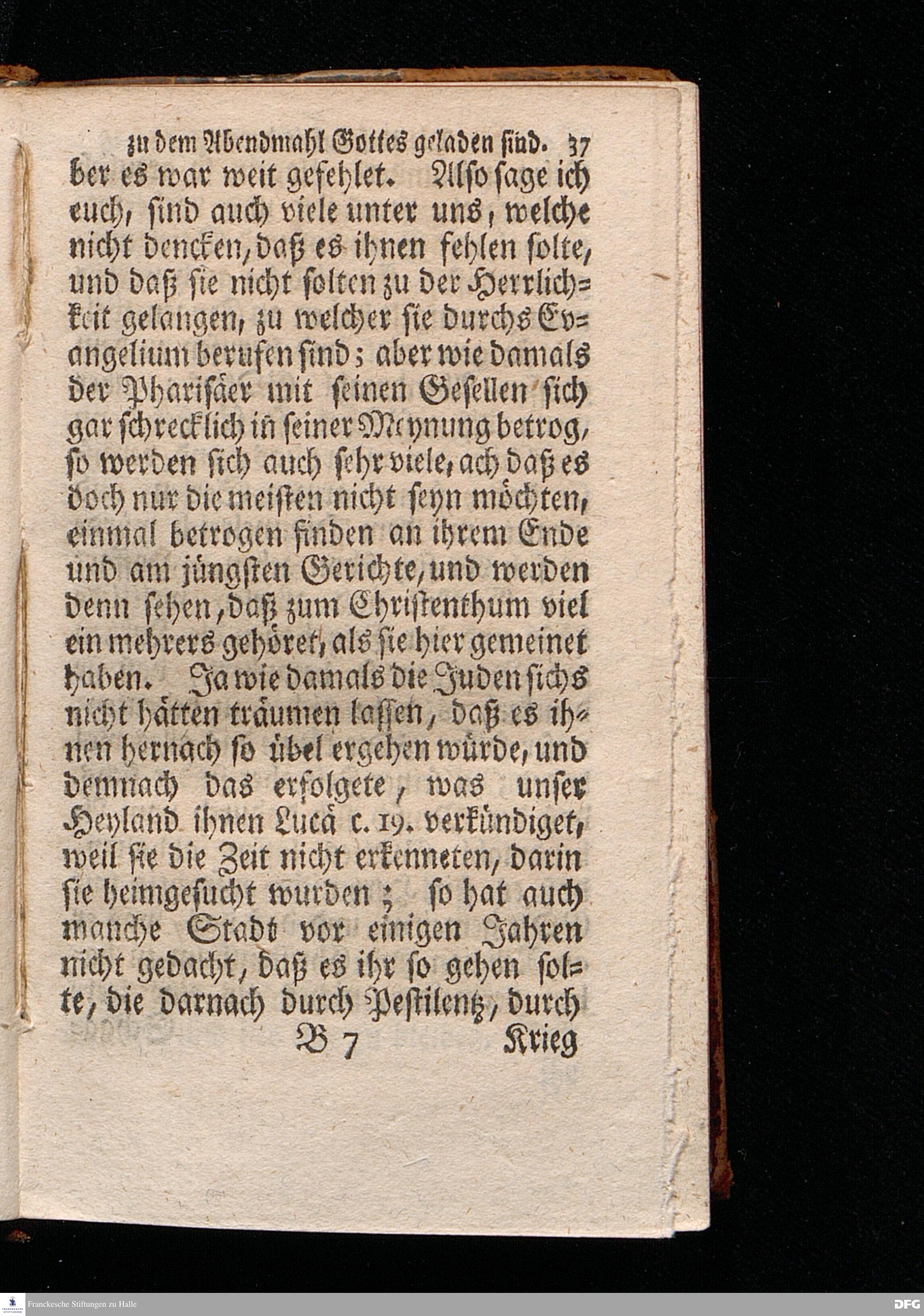 Die Unseligkeit Derer / Die vergebens zu dem Abendmahl GOttes geladen sind / Aus dem Evangelischen Text Luc.XIV, 16--24. Am II.Sonntag nach Trinit. 1715. In der S.Ulrichs=Kirche zu Halle vorgestellet von August Hermann Francken / S.Th.Prof.& Past.zu S.Ulrich und des Gymnasii Scholarcha. Der Jugend in denen zum Wäysenhause gehörigen Schulen nach gehaltenem Examine ausgetheilet d.8.Jul.1719. Andere Auflage. HALLE / In Verlegung des Wäysenhauses. 1729.