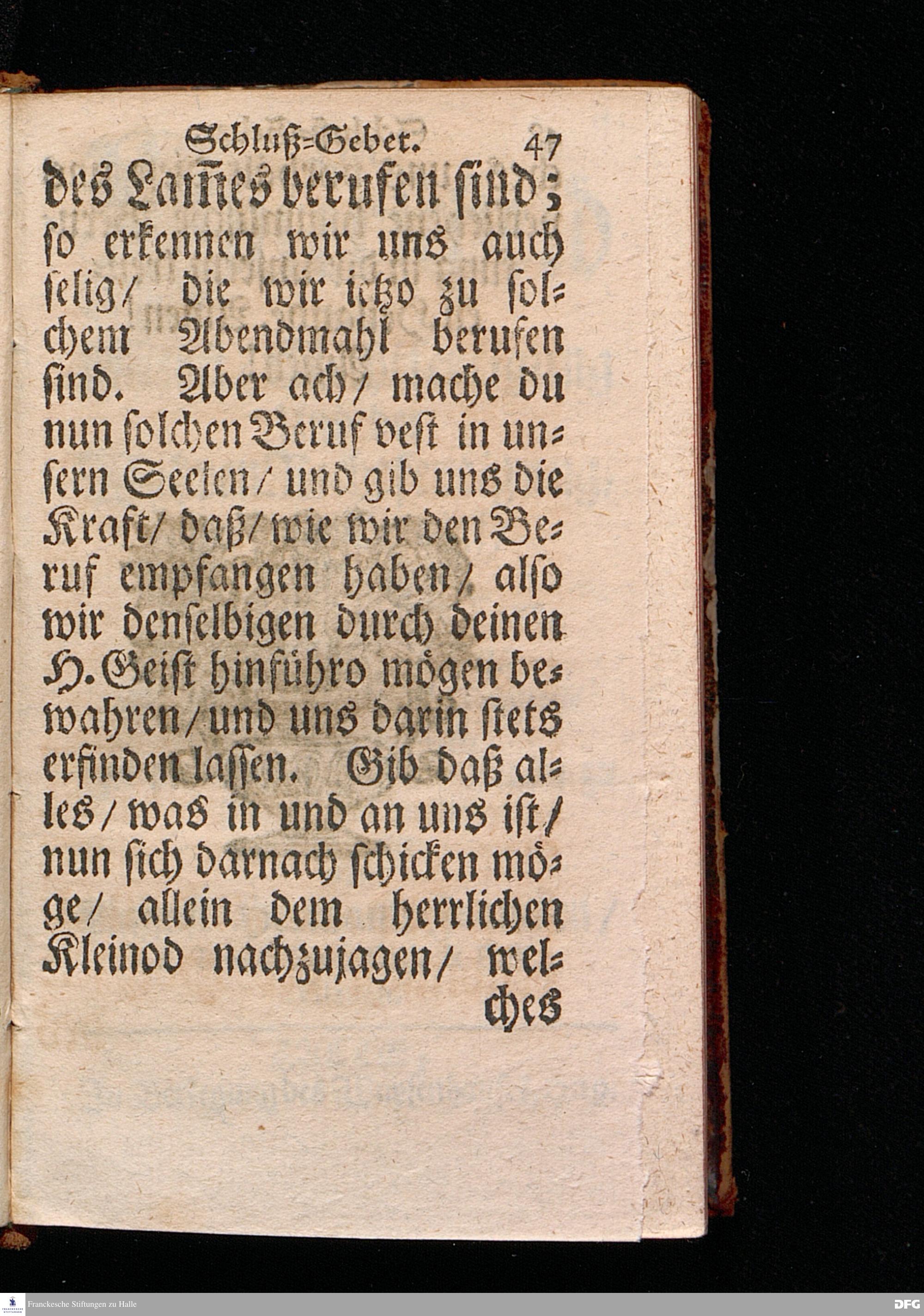 Die Unseligkeit Derer / Die vergebens zu dem Abendmahl GOttes geladen sind / Aus dem Evangelischen Text Luc.XIV, 16--24. Am II.Sonntag nach Trinit. 1715. In der S.Ulrichs=Kirche zu Halle vorgestellet von August Hermann Francken / S.Th.Prof.& Past.zu S.Ulrich und des Gymnasii Scholarcha. Der Jugend in denen zum Wäysenhause gehörigen Schulen nach gehaltenem Examine ausgetheilet d.8.Jul.1719. Andere Auflage. HALLE / In Verlegung des Wäysenhauses. 1729.