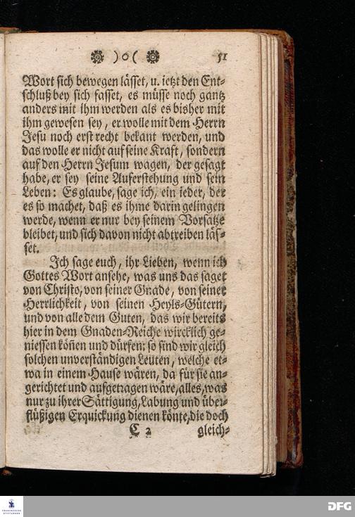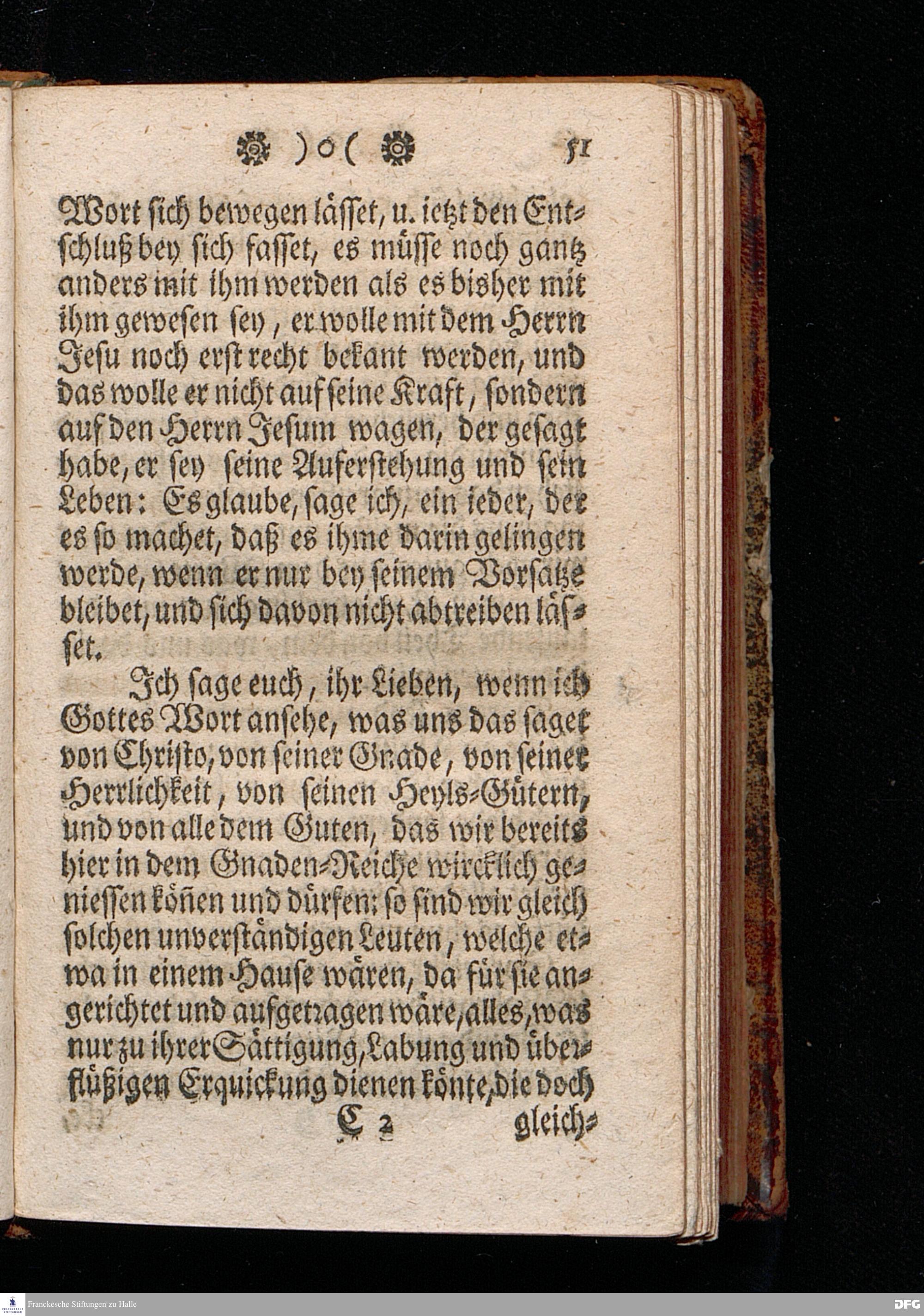 Vorbereitung auf das Heilige Oster=Fest / den 29.Mart. 1720. Nach Anleitung der Worte Joh.XI, 25.26. [Bibelzitat.] In Volckreicher Versammlung auf dem Wäysenhause Zu Glaucha an Halle gegeben von August Hermann Francken / S.Th.Pr.Past.Vlr.& Schol. Andere Auflage. Halle, zu finden im Wäysenhause. 1730.