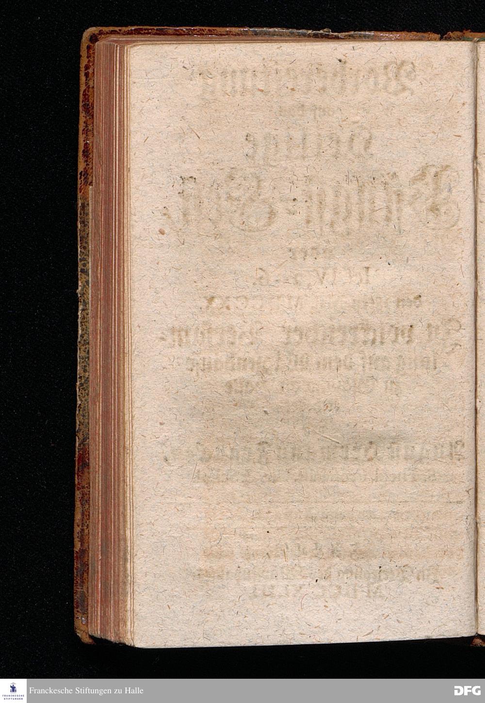Vorbereitung auf das Heilige Pfingst=Fest, über Ies.IV, 2--6. den 18ten Maj. MDCCXX. In volckreicher Versamlung[!] auf dem Wäysenhause zu Glaucha an Halle ertheilet von August Hermann Francken, S.Theol.Prof.Past.Ulr.& Schol. Andere Auflage. HALLE, In Verlegung des Wäysenhauses. MDCCXLIII.