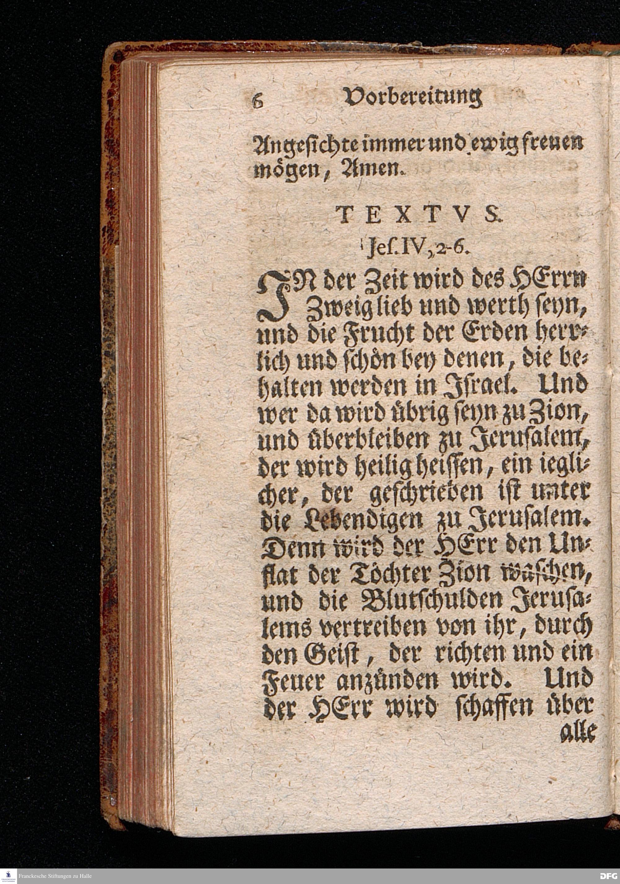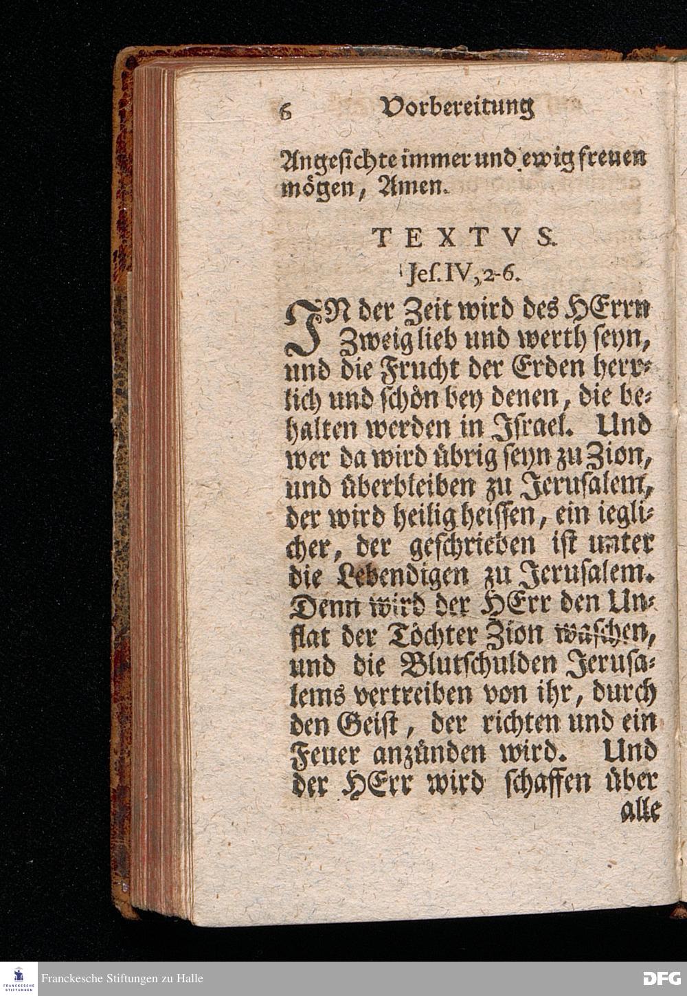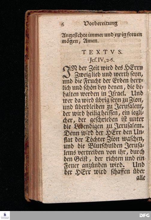 Vorbereitung auf das Heilige Pfingst=Fest, über Ies.IV, 2--6. den 18ten Maj. MDCCXX. In volckreicher Versamlung[!] auf dem Wäysenhause zu Glaucha an Halle ertheilet von August Hermann Francken, S.Theol.Prof.Past.Ulr.& Schol. Andere Auflage. HALLE, In Verlegung des Wäysenhauses. MDCCXLIII.