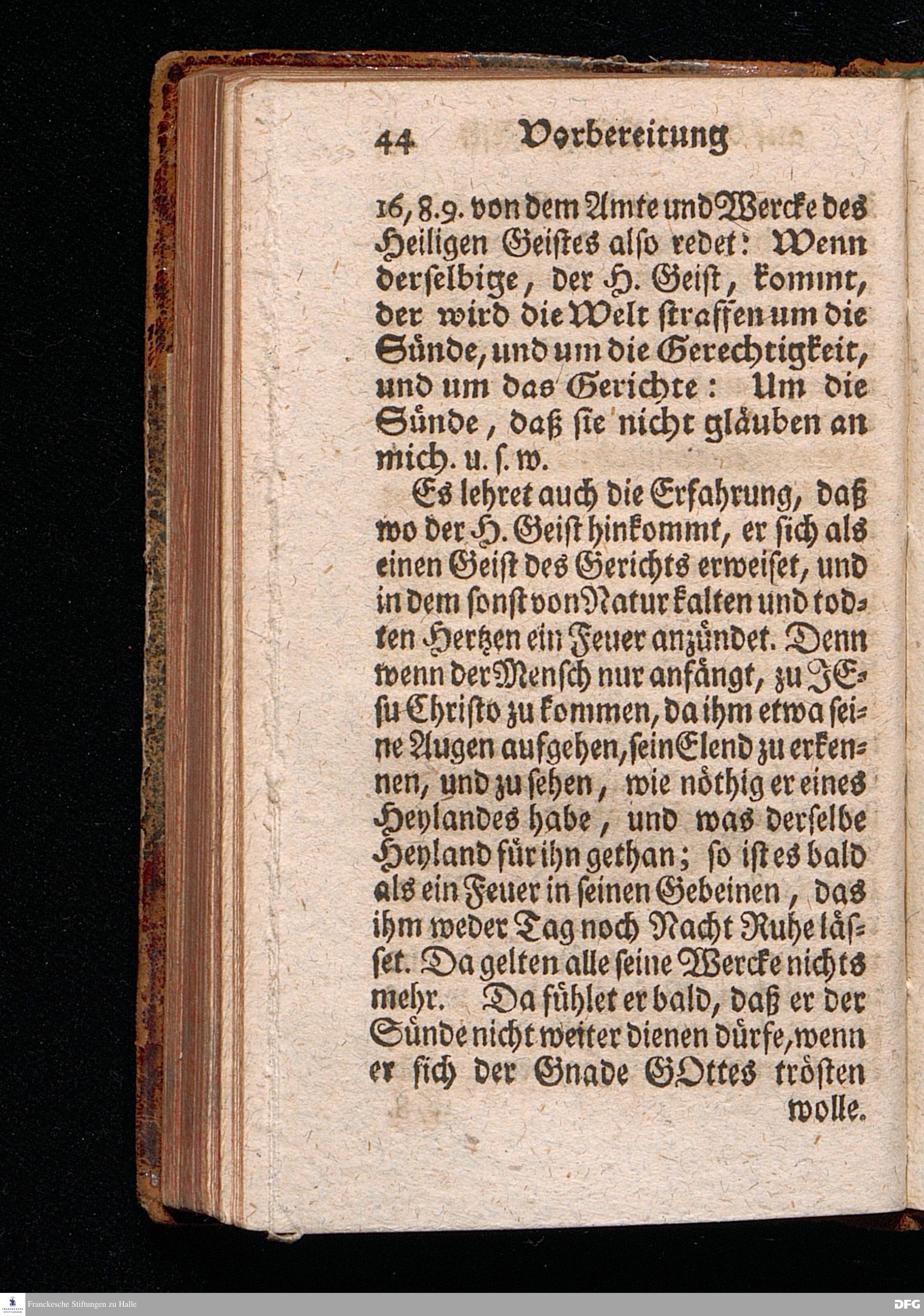 Vorbereitung auf das Heilige Pfingst=Fest, über Ies.IV, 2--6. den 18ten Maj. MDCCXX. In volckreicher Versamlung[!] auf dem Wäysenhause zu Glaucha an Halle ertheilet von August Hermann Francken, S.Theol.Prof.Past.Ulr.& Schol. Andere Auflage. HALLE, In Verlegung des Wäysenhauses. MDCCXLIII.
