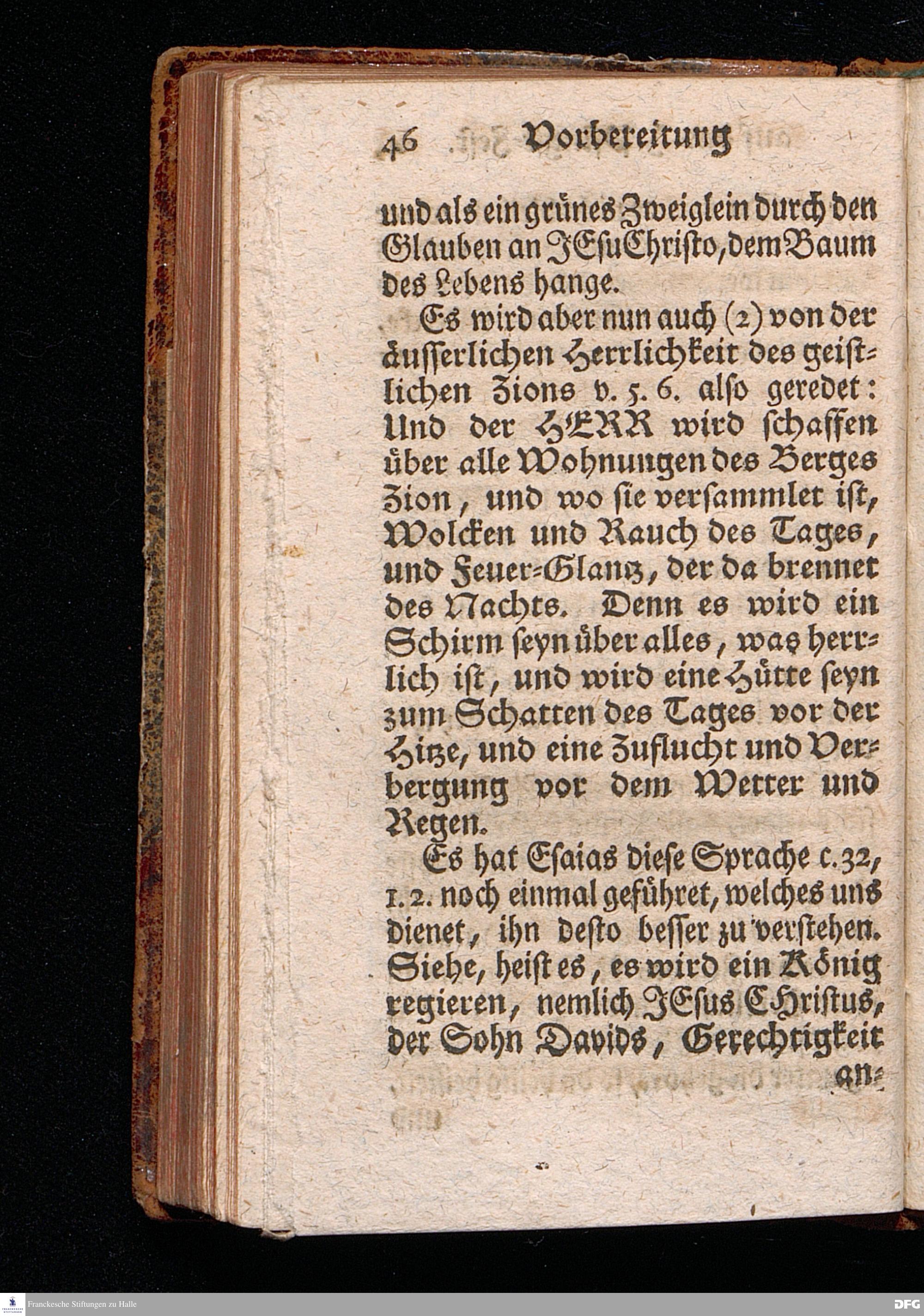Vorbereitung auf das Heilige Pfingst=Fest, über Ies.IV, 2--6. den 18ten Maj. MDCCXX. In volckreicher Versamlung[!] auf dem Wäysenhause zu Glaucha an Halle ertheilet von August Hermann Francken, S.Theol.Prof.Past.Ulr.& Schol. Andere Auflage. HALLE, In Verlegung des Wäysenhauses. MDCCXLIII.