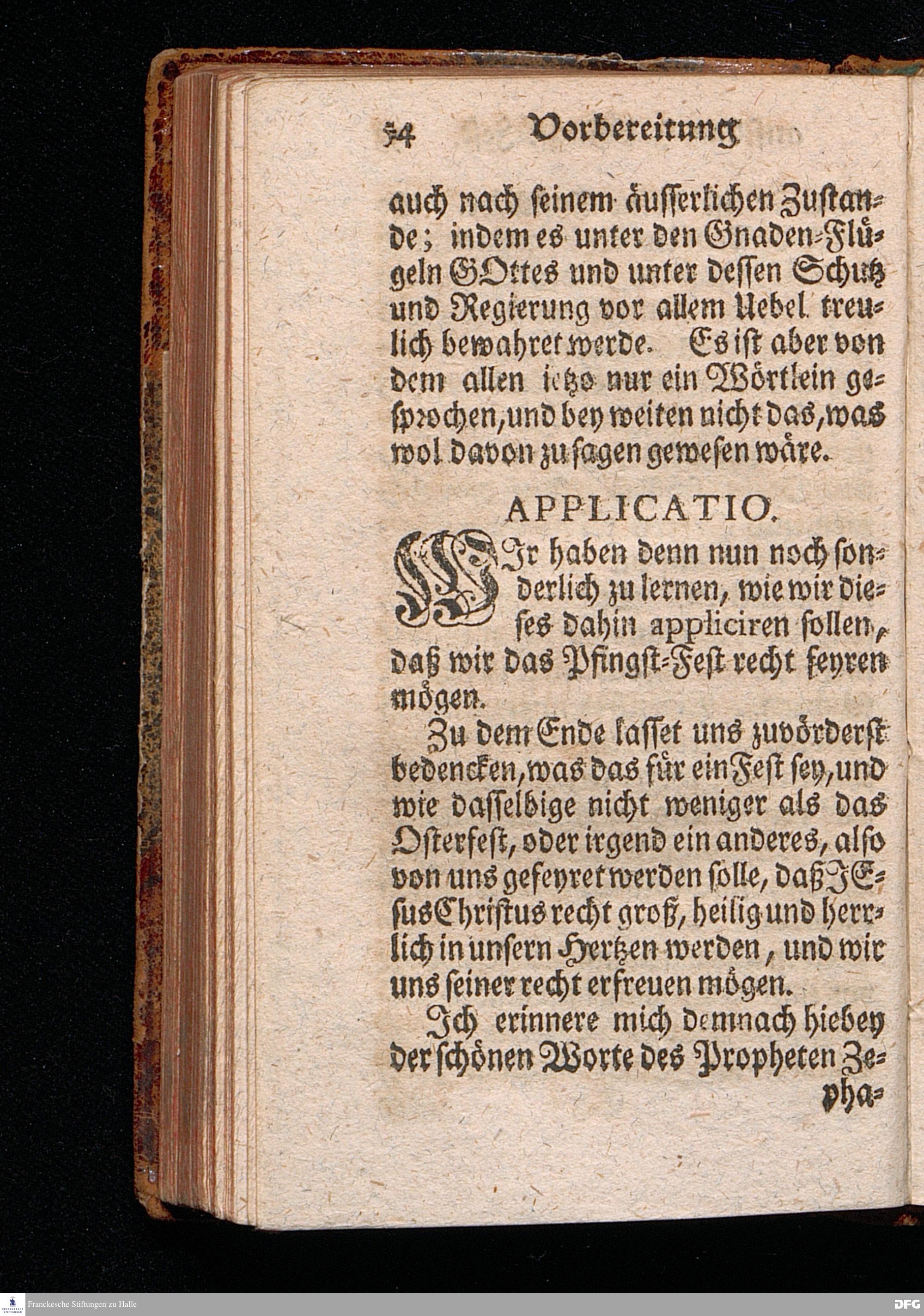 Vorbereitung auf das Heilige Pfingst=Fest, über Ies.IV, 2--6. den 18ten Maj. MDCCXX. In volckreicher Versamlung[!] auf dem Wäysenhause zu Glaucha an Halle ertheilet von August Hermann Francken, S.Theol.Prof.Past.Ulr.& Schol. Andere Auflage. HALLE, In Verlegung des Wäysenhauses. MDCCXLIII.