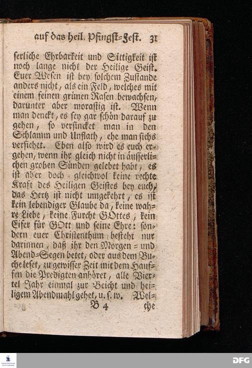 Vorbereitung auf das Heilige Pfingst=Fest / Den 26ten Maji 1719. nach Anleitung der Worte Luc.XI, 13. [Bibelzitat.] in Volckreicher Versammlung Auf dem Wäysen=Hause zu Glaucha an Halle gegeben von August Hermann Francken / SS.Theol.Prof.Past.Vlr.& Scholarcha. Die II.Auflage. HALLE, In Verlegung des Wäysen=Hauses. 1730.