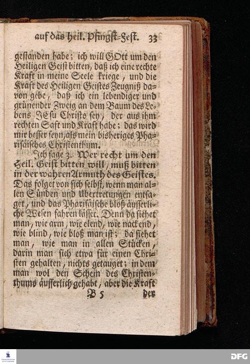 Vorbereitung auf das Heilige Pfingst=Fest / Den 26ten Maji 1719. nach Anleitung der Worte Luc.XI, 13. [Bibelzitat.] in Volckreicher Versammlung Auf dem Wäysen=Hause zu Glaucha an Halle gegeben von August Hermann Francken / SS.Theol.Prof.Past.Vlr.& Scholarcha. Die II.Auflage. HALLE, In Verlegung des Wäysen=Hauses. 1730.