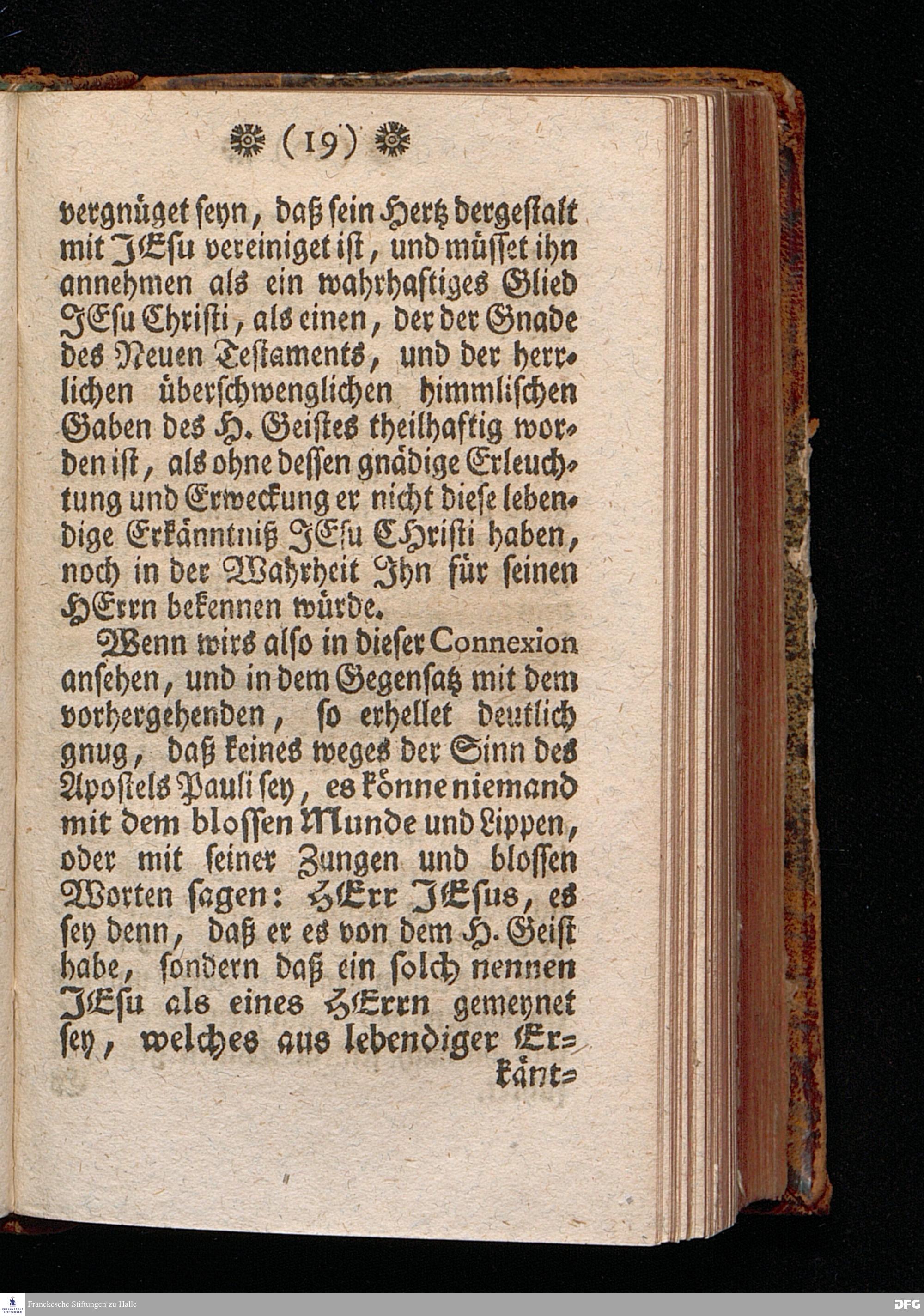 Vorbereitung auf das Heilige Pfingst=Fest, nach Anleitung Der Worte Pauli 1.Cor.XII,3. [Bibelzitat.] in öffentlicher Versammlung auf dem Wäysen=Hause zu Glaucha an Halle, den 7.Jun.1710. ertheilet Von August Hermann Francken, S.Theol.Prof.Ord.und Past.zu St.Ulrich, und des Gymnasii Scholarcha. Dritte Auflage. HALLE, in Verlegung des Wäysen=Hauses, 1741.