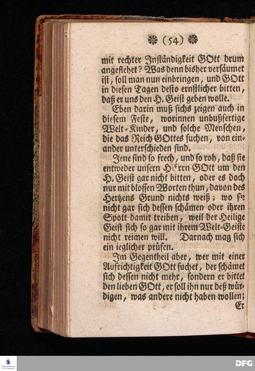 Vorbereitung auf das Heilige Pfingst=Fest, nach Anleitung Der Worte Pauli 1.Cor.XII,3. [Bibelzitat.] in öffentlicher Versammlung auf dem Wäysen=Hause zu Glaucha an Halle, den 7.Jun.1710. ertheilet Von August Hermann Francken, S.Theol.Prof.Ord.und Past.zu St.Ulrich, und des Gymnasii Scholarcha. Dritte Auflage. HALLE, in Verlegung des Wäysen=Hauses, 1741.