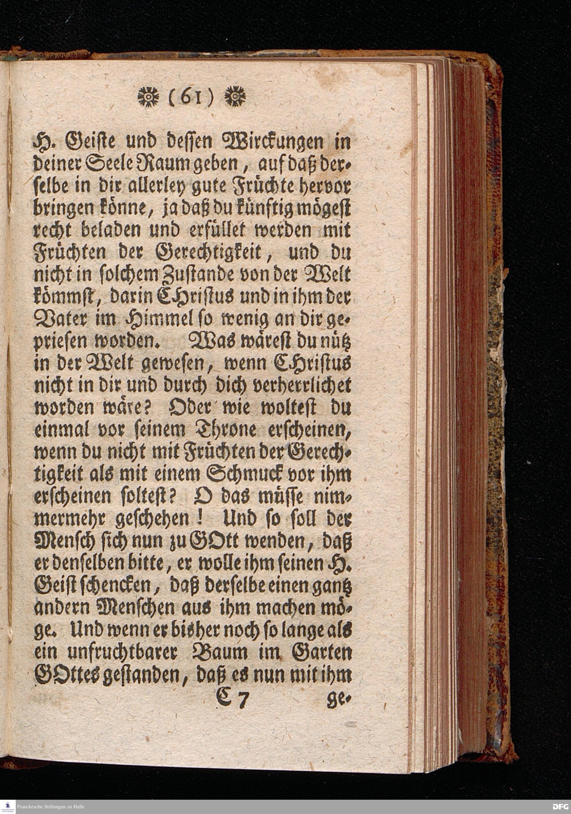 Vorbereitung auf das Heilige Pfingst=Fest, nach Anleitung Der Worte Pauli 1.Cor.XII,3. [Bibelzitat.] in öffentlicher Versammlung auf dem Wäysen=Hause zu Glaucha an Halle, den 7.Jun.1710. ertheilet Von August Hermann Francken, S.Theol.Prof.Ord.und Past.zu St.Ulrich, und des Gymnasii Scholarcha. Dritte Auflage. HALLE, in Verlegung des Wäysen=Hauses, 1741.
