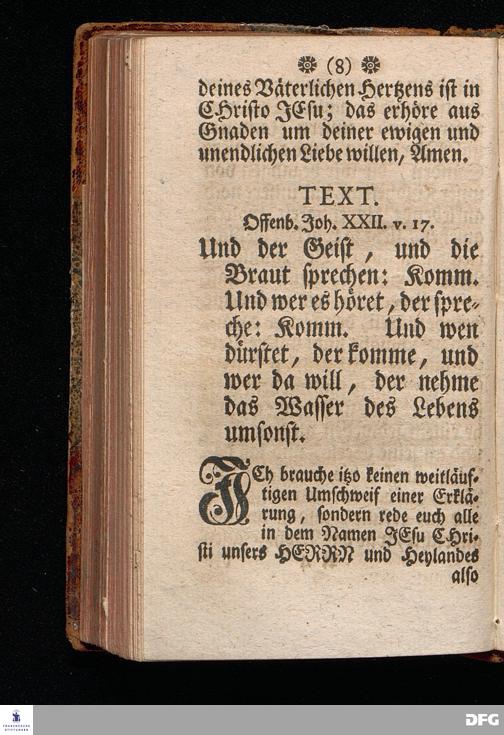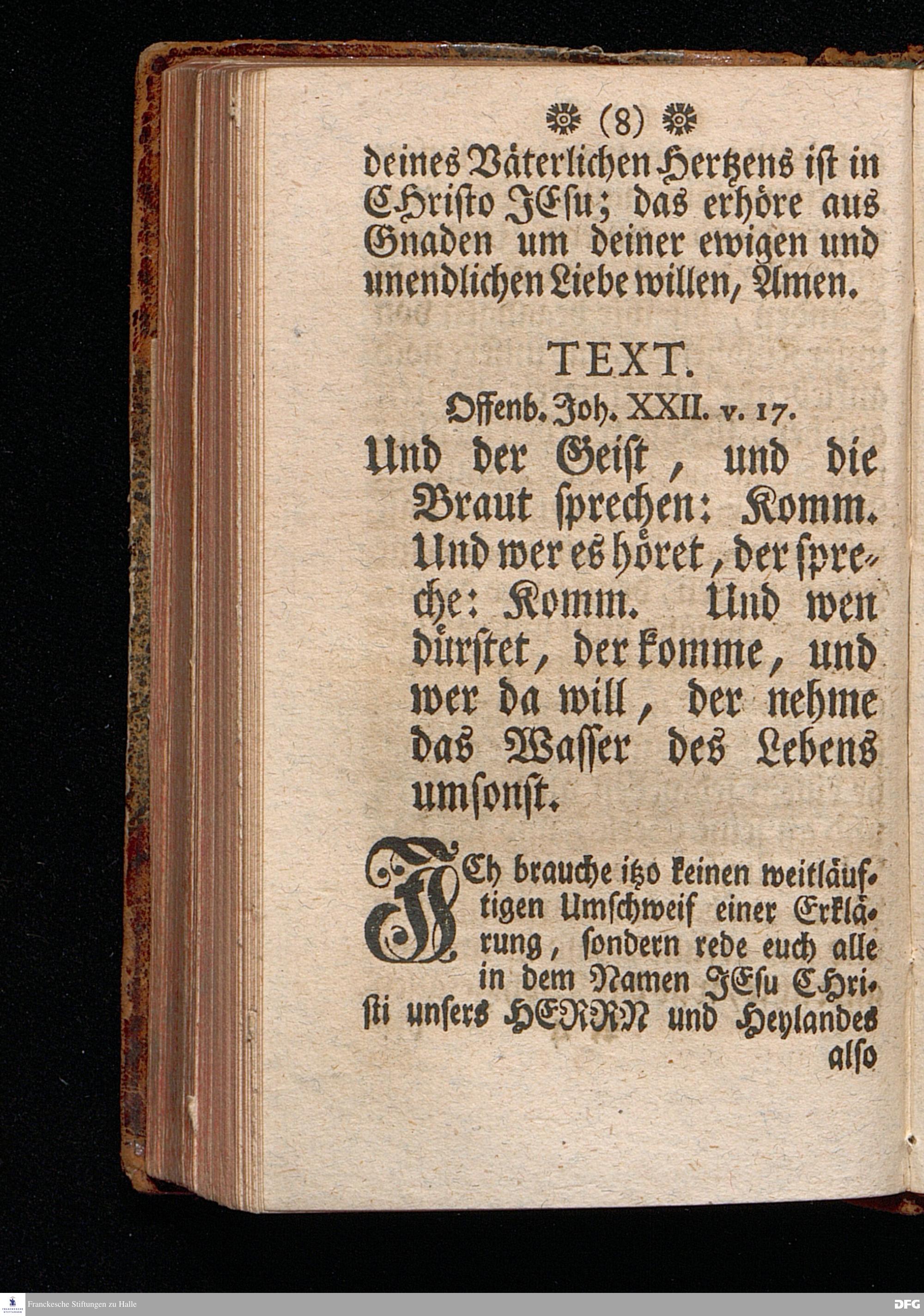 Vorbereitung auf das heilige Pfingst=Fest, den 3. Junii 1713. Nach Anleitung der Worte Off.XXII, 17. [Bibelzitat;] In Volckreicher Versammlung auf dem Wäysen=Hause zu Glaucha an Halle gegeben von August Hermann Francken, S.Theol.Pr.Ord.Past.Ulr.& Scholarcha. Vierte Auflage. HALLE, in Verlegung des Wäysen=Hauses, 1741.