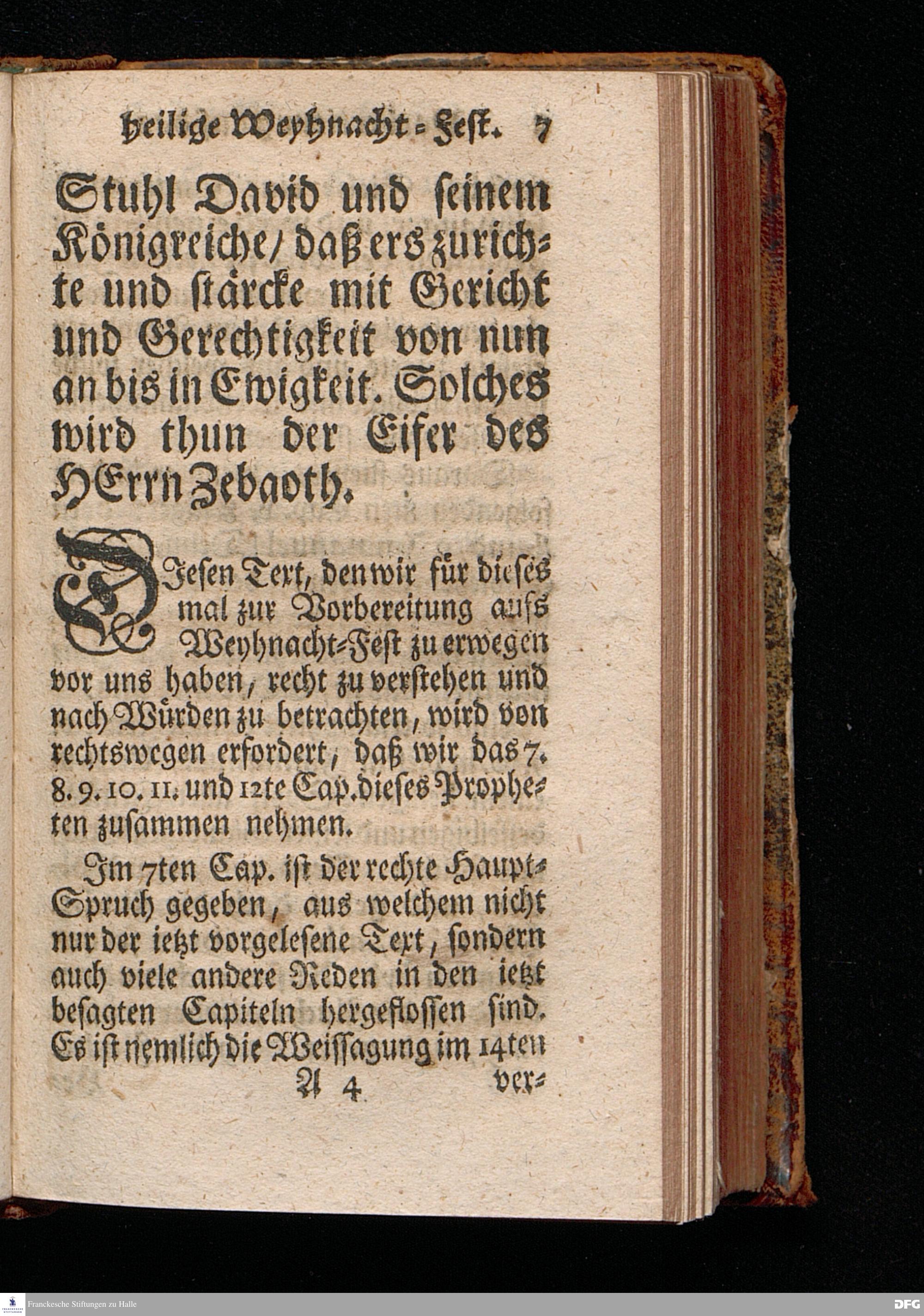 Vorbereitung auf das Weyhnacht=Fest / aus den Worten Jes.IX, 6.7. [Bibeltext;] den 23.Decembr.1720. in volckreicher Versammlung auf dem Wäysen=Hause zu Glaucha an Halle ertheilet von August Hermann Francken / S.Th.Prof.Past.Vlr.& Schol. Andere Auflage. HALLE, zu finden im Wäysen=Hause 1730.