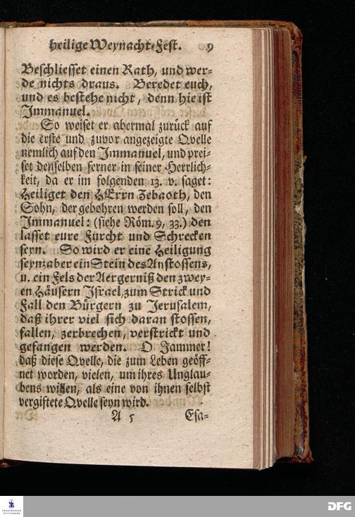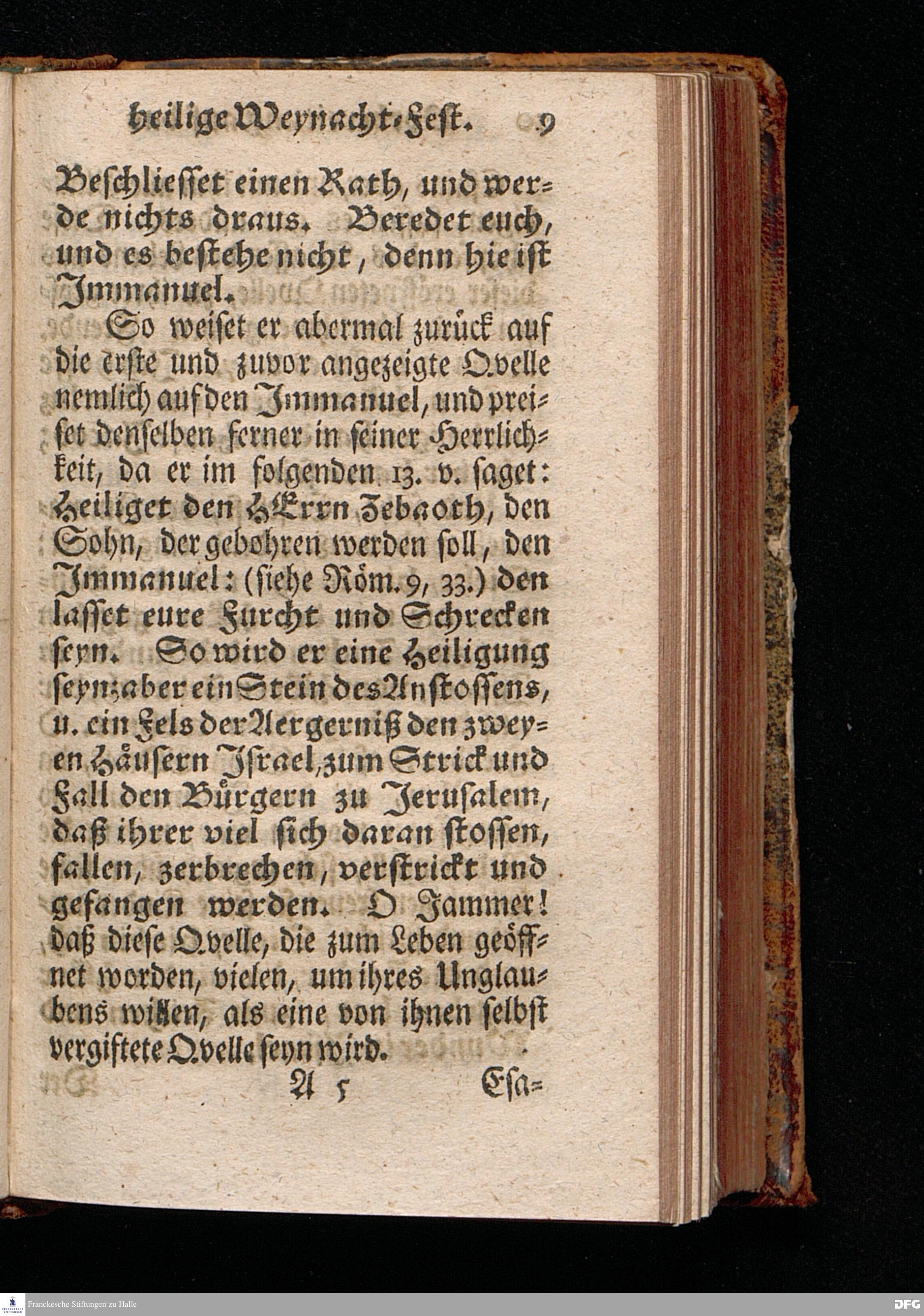 Vorbereitung auf das Weyhnacht=Fest / aus den Worten Jes.IX, 6.7. [Bibeltext;] den 23.Decembr.1720. in volckreicher Versammlung auf dem Wäysen=Hause zu Glaucha an Halle ertheilet von August Hermann Francken / S.Th.Prof.Past.Vlr.& Schol. Andere Auflage. HALLE, zu finden im Wäysen=Hause 1730.