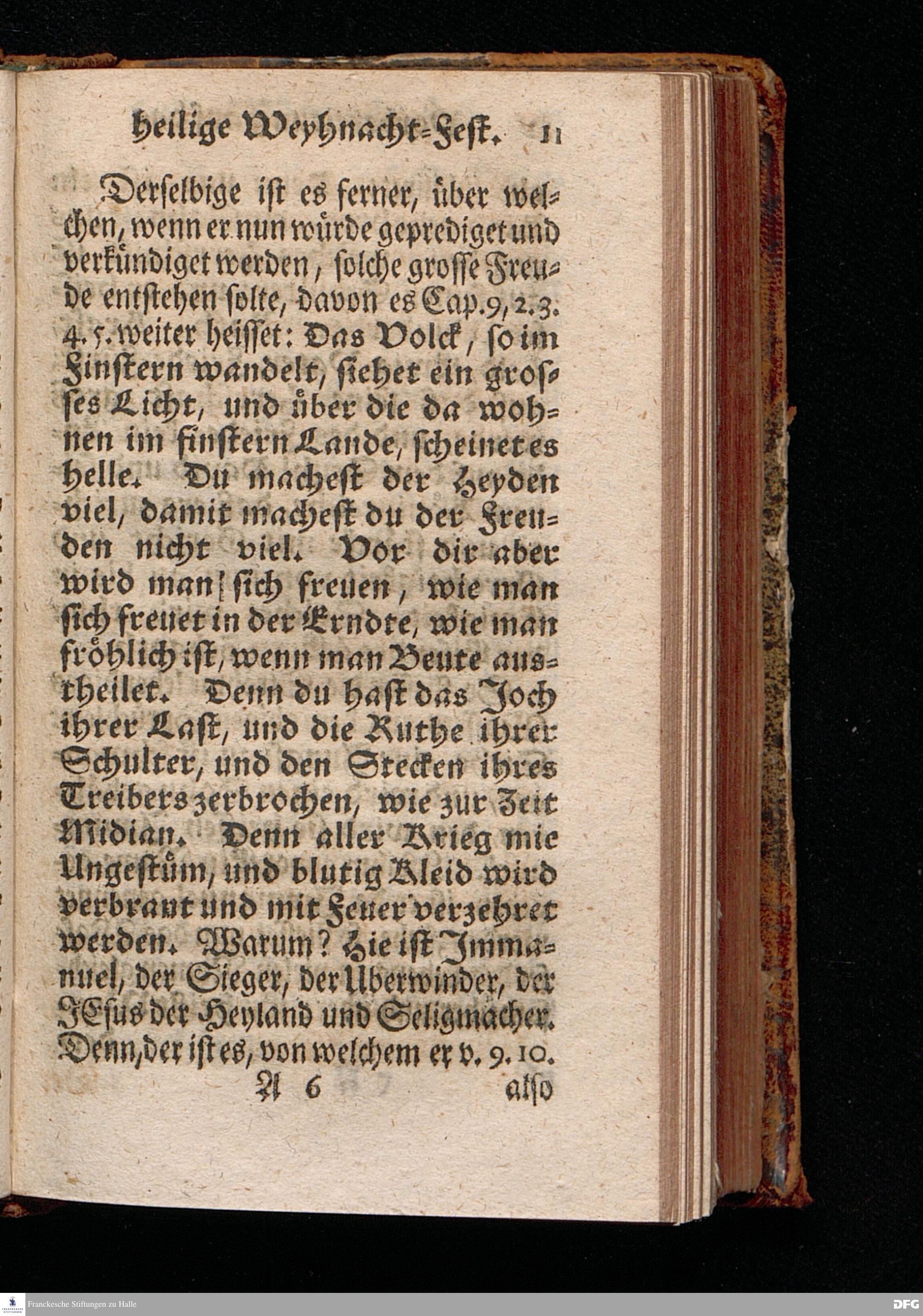 Vorbereitung auf das Weyhnacht=Fest / aus den Worten Jes.IX, 6.7. [Bibeltext;] den 23.Decembr.1720. in volckreicher Versammlung auf dem Wäysen=Hause zu Glaucha an Halle ertheilet von August Hermann Francken / S.Th.Prof.Past.Vlr.& Schol. Andere Auflage. HALLE, zu finden im Wäysen=Hause 1730.