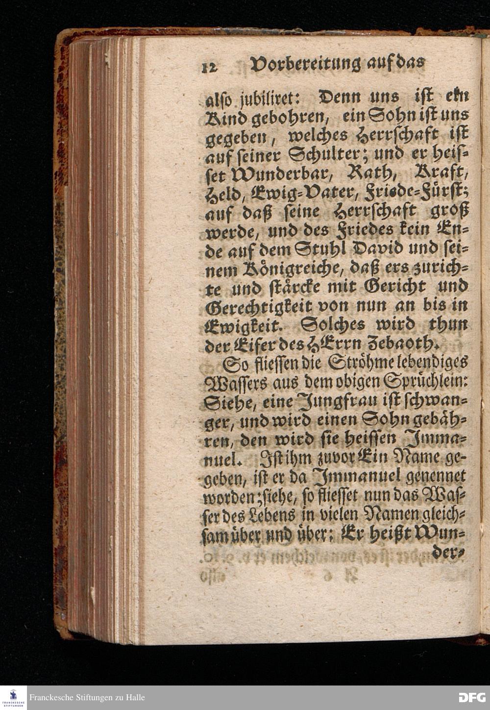 Vorbereitung auf das Weyhnacht=Fest / aus den Worten Jes.IX, 6.7. [Bibeltext;] den 23.Decembr.1720. in volckreicher Versammlung auf dem Wäysen=Hause zu Glaucha an Halle ertheilet von August Hermann Francken / S.Th.Prof.Past.Vlr.& Schol. Andere Auflage. HALLE, zu finden im Wäysen=Hause 1730.