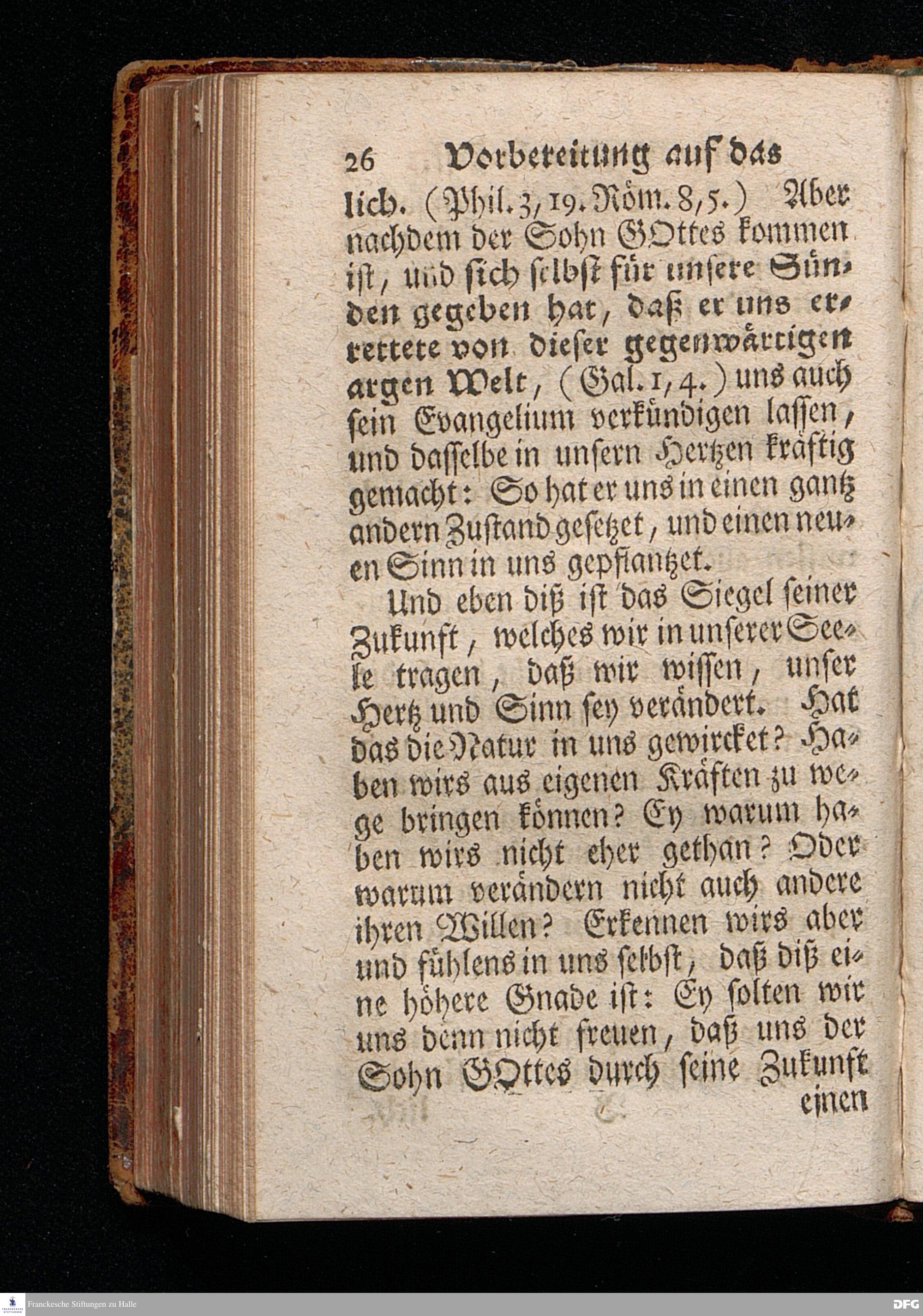 Vorbereitung auf das Weyhnacht=Fest / über die Worte 1 Joh.V, 20. [Bibelzitat;] den 22.Decembr. 1719. in Volckreicher Versammlung auf dem Wäysen=Hause zu Glaucha an Halle ertheilet von August Hermann Francken, S.Theol.Prof.Past. zu St.Ulrich, und des Gymnasii Scholarcha. Der Jugend in den Schulen des Wäysen=Hauses nach gehaltenem Examine ausgetheilet den 14.Decembr.1720. HALLE, gedr.im Wäysen=Hause. 1729.