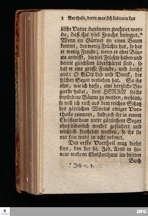 Schriftmäßige Vortheile, deren man sich in der Ubung des wahren thätigen Christenthums / und in dem von GOTT darinnen anbefohlnen Wachsthum unter göttlichem Segen mit Nutzen bedienen kan, Wie solche bey dem Wohl=Ehrw. Herrn Ambrosio Wirthen / Suden=Prediger im neuen Spital zum H.Geist, zu Nürnberg, einigen bey demselben gewöhnlicher massen versammleten Christlichen Personen den 7.Mart. Anno 1718. dem Innhalt nach vorgestellet worden von August Hermann Francken, S.Theol.Prof.Past.S.Vlric.& Gymn.Schol. Der Jugend in den Schulen des Wäysen=Hauses nach dem Examine ausgetheilet den 24.Octobr.1722. HALLE, in Verlegung des Wäysen=Hauses, 1734.