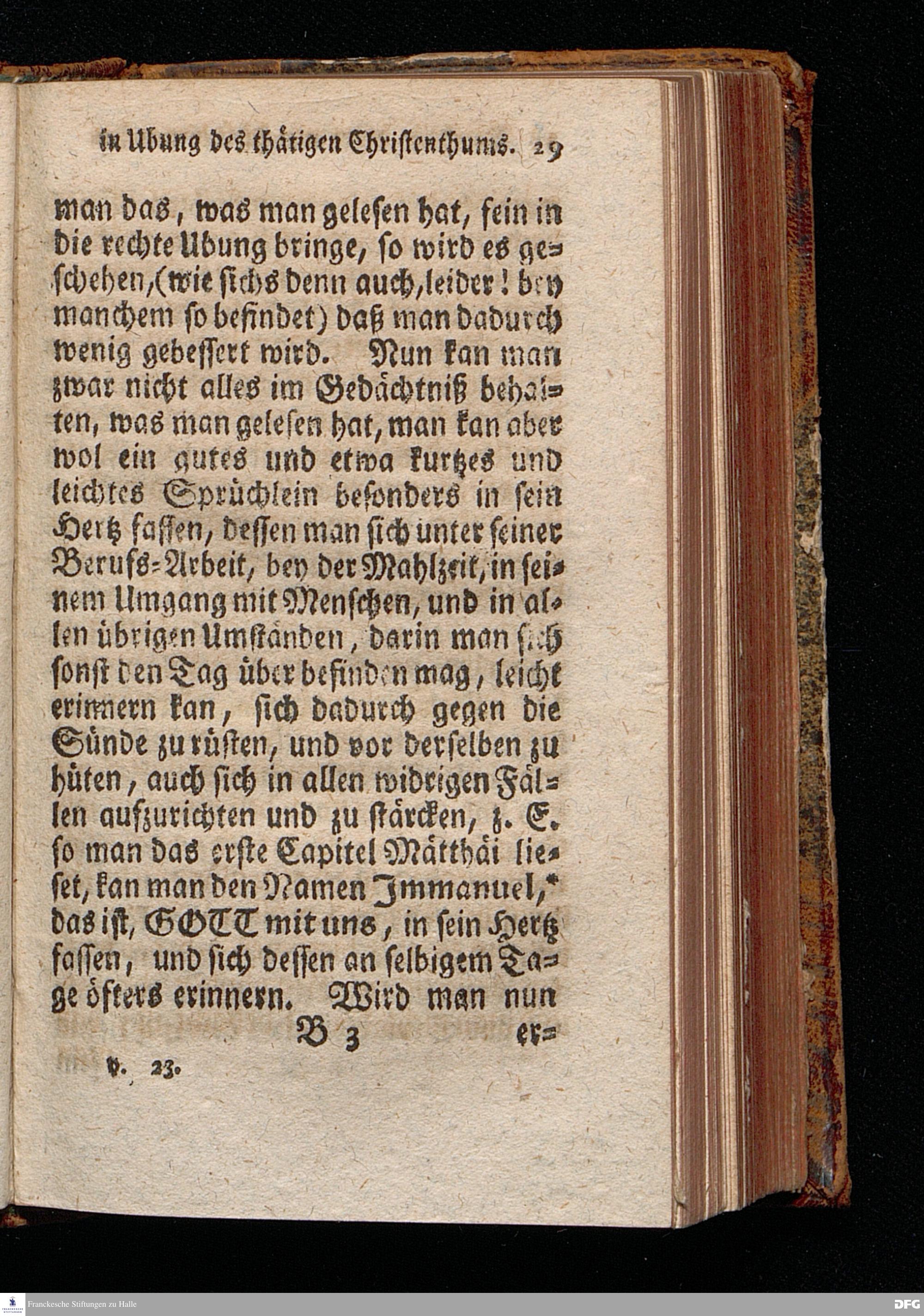 Schriftmäßige Vortheile, deren man sich in der Ubung des wahren thätigen Christenthums / und in dem von GOTT darinnen anbefohlnen Wachsthum unter göttlichem Segen mit Nutzen bedienen kan, Wie solche bey dem Wohl=Ehrw. Herrn Ambrosio Wirthen / Suden=Prediger im neuen Spital zum H.Geist, zu Nürnberg, einigen bey demselben gewöhnlicher massen versammleten Christlichen Personen den 7.Mart. Anno 1718. dem Innhalt nach vorgestellet worden von August Hermann Francken, S.Theol.Prof.Past.S.Vlric.& Gymn.Schol. Der Jugend in den Schulen des Wäysen=Hauses nach dem Examine ausgetheilet den 24.Octobr.1722. HALLE, in Verlegung des Wäysen=Hauses, 1734.