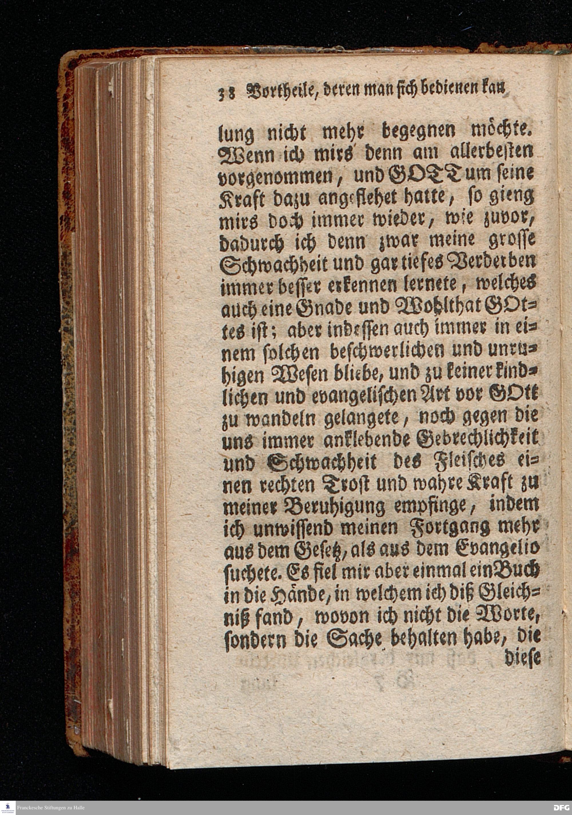 Schriftmäßige Vortheile, deren man sich in der Ubung des wahren thätigen Christenthums / und in dem von GOTT darinnen anbefohlnen Wachsthum unter göttlichem Segen mit Nutzen bedienen kan, Wie solche bey dem Wohl=Ehrw. Herrn Ambrosio Wirthen / Suden=Prediger im neuen Spital zum H.Geist, zu Nürnberg, einigen bey demselben gewöhnlicher massen versammleten Christlichen Personen den 7.Mart. Anno 1718. dem Innhalt nach vorgestellet worden von August Hermann Francken, S.Theol.Prof.Past.S.Vlric.& Gymn.Schol. Der Jugend in den Schulen des Wäysen=Hauses nach dem Examine ausgetheilet den 24.Octobr.1722. HALLE, in Verlegung des Wäysen=Hauses, 1734.