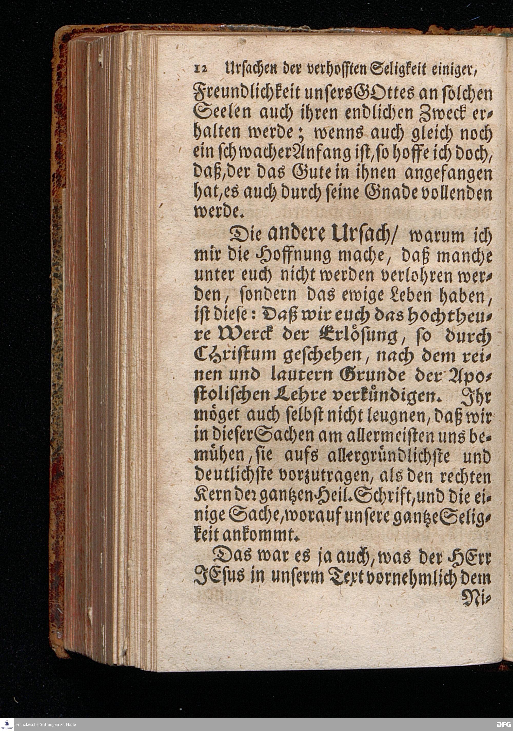 Die Ursachen der gehofften Seligkeit einiger, Und der besorgten Verdammniß vieler, Die sich äusserlich zur Christlichen Gemeine halten / Am andern Pfingst=Feyertage 1718. nach Anleitung des Evangel.Textes Joh.III, 16-21. In der S.Ulrichs=Kirche in Halle / mit stetiger Application auf die Zuhörer vorgestellet von August Hermann Francken / S.Th.Prof.& Past.zu S.Ulrich, und des Gymnasii Scholarcha. Andere Auflage. Der Jugend in den Schulen des Wäysenhauses, nach gehaltenem Examine, den 18.Jun. gedachten Jahrs, ausgetheilet. Halle, in Verlegung des Wäysenhauses. 1723.
