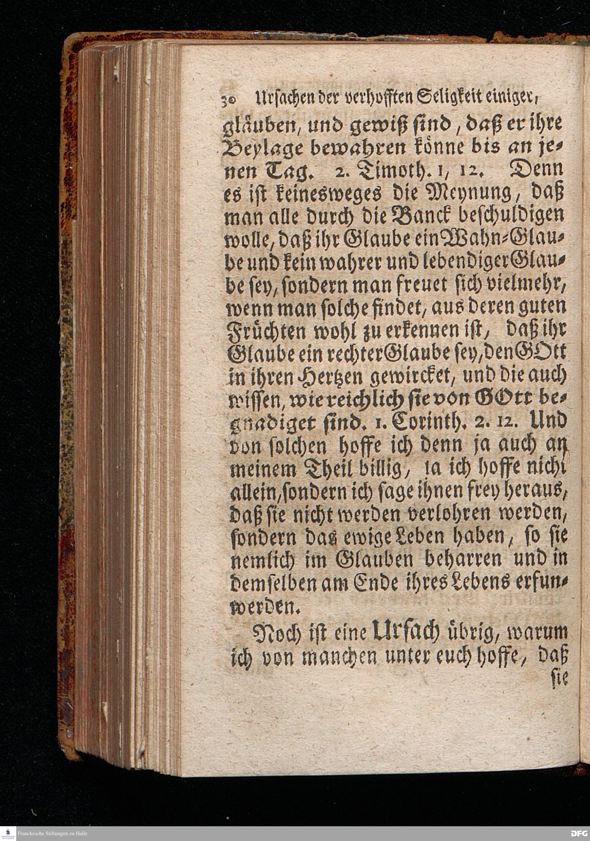Die Ursachen der gehofften Seligkeit einiger, Und der besorgten Verdammniß vieler, Die sich äusserlich zur Christlichen Gemeine halten / Am andern Pfingst=Feyertage 1718. nach Anleitung des Evangel.Textes Joh.III, 16-21. In der S.Ulrichs=Kirche in Halle / mit stetiger Application auf die Zuhörer vorgestellet von August Hermann Francken / S.Th.Prof.& Past.zu S.Ulrich, und des Gymnasii Scholarcha. Andere Auflage. Der Jugend in den Schulen des Wäysenhauses, nach gehaltenem Examine, den 18.Jun. gedachten Jahrs, ausgetheilet. Halle, in Verlegung des Wäysenhauses. 1723.