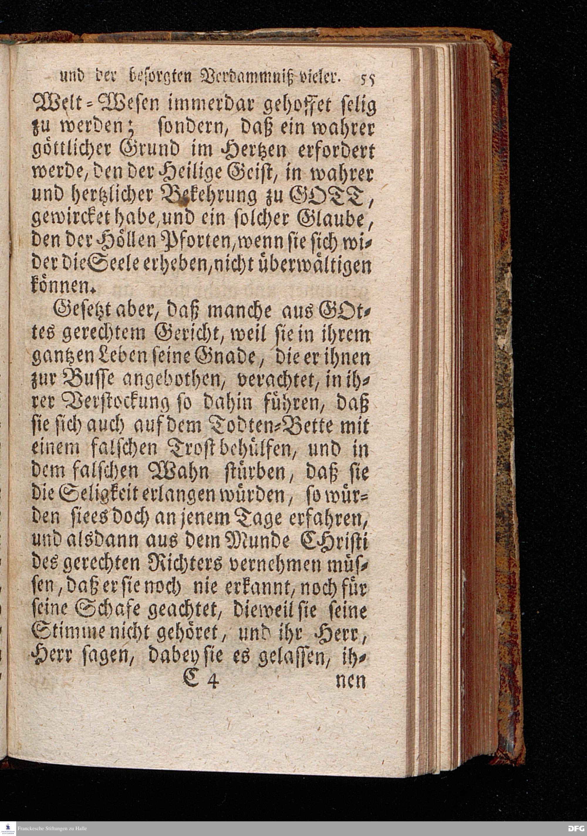 Die Ursachen der gehofften Seligkeit einiger, Und der besorgten Verdammniß vieler, Die sich äusserlich zur Christlichen Gemeine halten / Am andern Pfingst=Feyertage 1718. nach Anleitung des Evangel.Textes Joh.III, 16-21. In der S.Ulrichs=Kirche in Halle / mit stetiger Application auf die Zuhörer vorgestellet von August Hermann Francken / S.Th.Prof.& Past.zu S.Ulrich, und des Gymnasii Scholarcha. Andere Auflage. Der Jugend in den Schulen des Wäysenhauses, nach gehaltenem Examine, den 18.Jun. gedachten Jahrs, ausgetheilet. Halle, in Verlegung des Wäysenhauses. 1723.