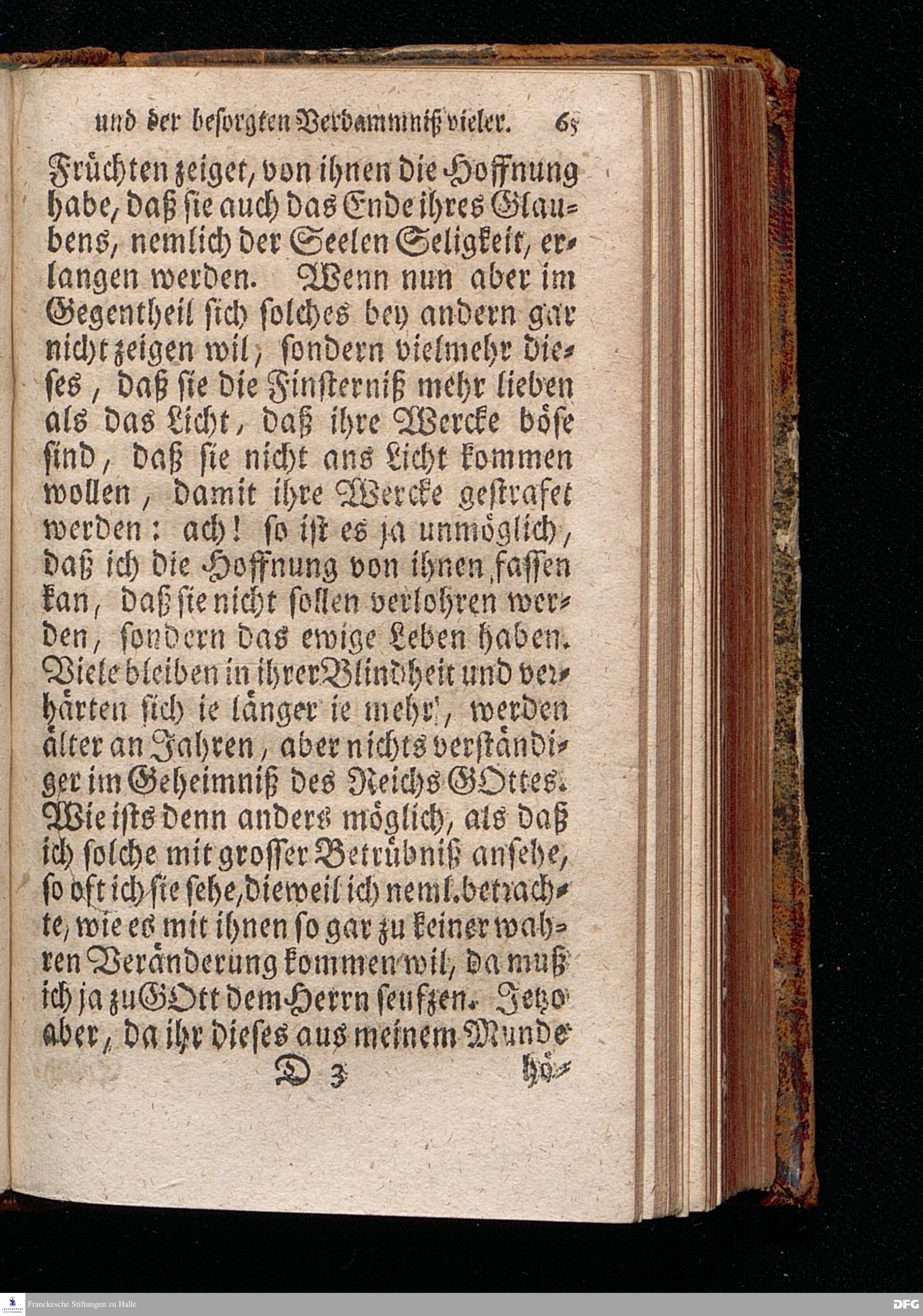 Die Ursachen der gehofften Seligkeit einiger, Und der besorgten Verdammniß vieler, Die sich äusserlich zur Christlichen Gemeine halten / Am andern Pfingst=Feyertage 1718. nach Anleitung des Evangel.Textes Joh.III, 16-21. In der S.Ulrichs=Kirche in Halle / mit stetiger Application auf die Zuhörer vorgestellet von August Hermann Francken / S.Th.Prof.& Past.zu S.Ulrich, und des Gymnasii Scholarcha. Andere Auflage. Der Jugend in den Schulen des Wäysenhauses, nach gehaltenem Examine, den 18.Jun. gedachten Jahrs, ausgetheilet. Halle, in Verlegung des Wäysenhauses. 1723.