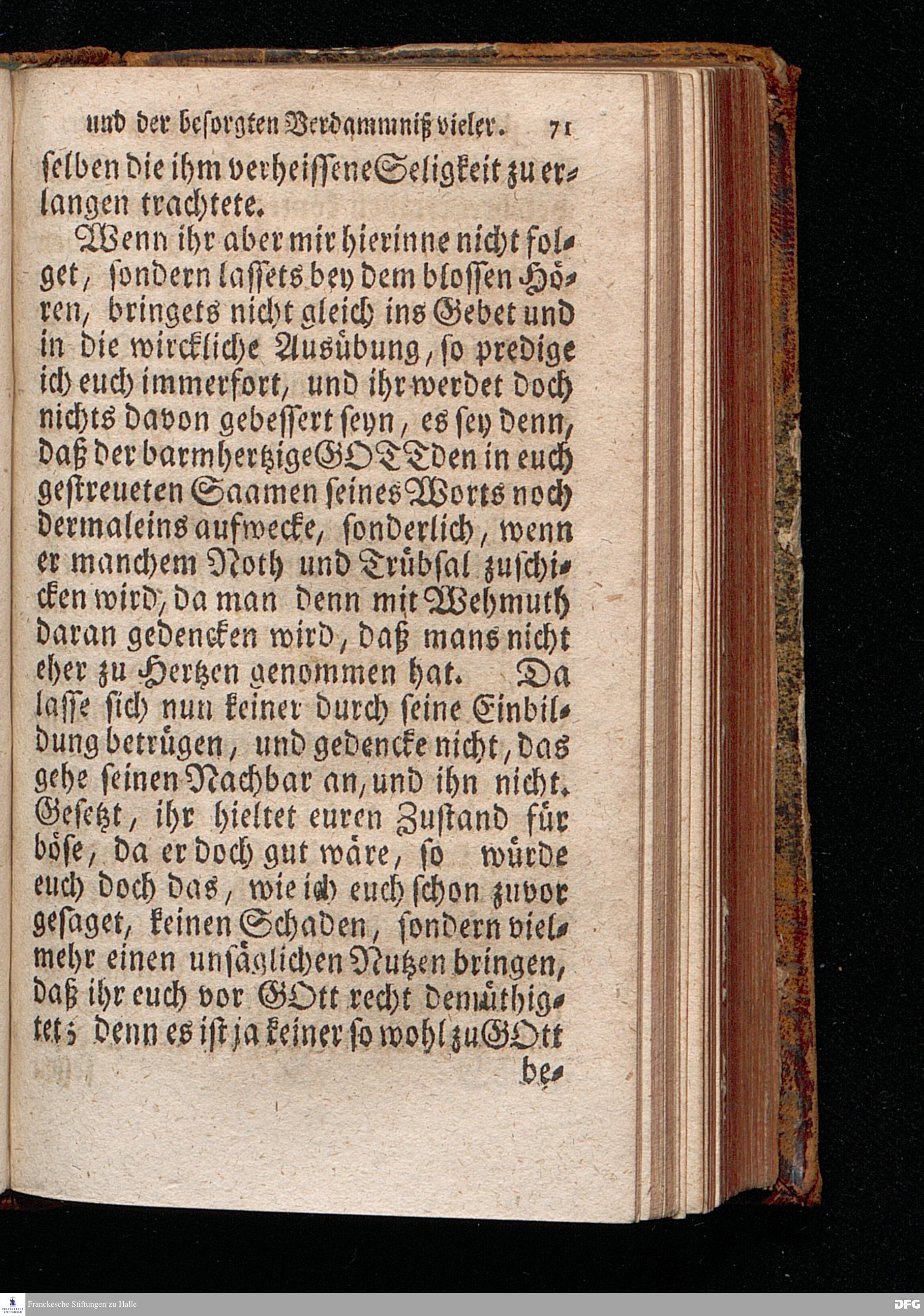 Die Ursachen der gehofften Seligkeit einiger, Und der besorgten Verdammniß vieler, Die sich äusserlich zur Christlichen Gemeine halten / Am andern Pfingst=Feyertage 1718. nach Anleitung des Evangel.Textes Joh.III, 16-21. In der S.Ulrichs=Kirche in Halle / mit stetiger Application auf die Zuhörer vorgestellet von August Hermann Francken / S.Th.Prof.& Past.zu S.Ulrich, und des Gymnasii Scholarcha. Andere Auflage. Der Jugend in den Schulen des Wäysenhauses, nach gehaltenem Examine, den 18.Jun. gedachten Jahrs, ausgetheilet. Halle, in Verlegung des Wäysenhauses. 1723.