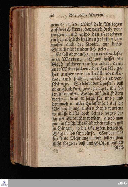 Das Rechte Warten Auf die Vollziehung Unsers Heyls / Aus 1.Petr.5, 6=12. Am III.Sonntag nach Trinit. 1714. Zu Halle in der Schul=Kirche vorgestellet von August Hermann Francken / S.Theol.Prof.Ord.& Past. Andere Auflage. HALLE, zu finden im Wäysenhause. 1731.