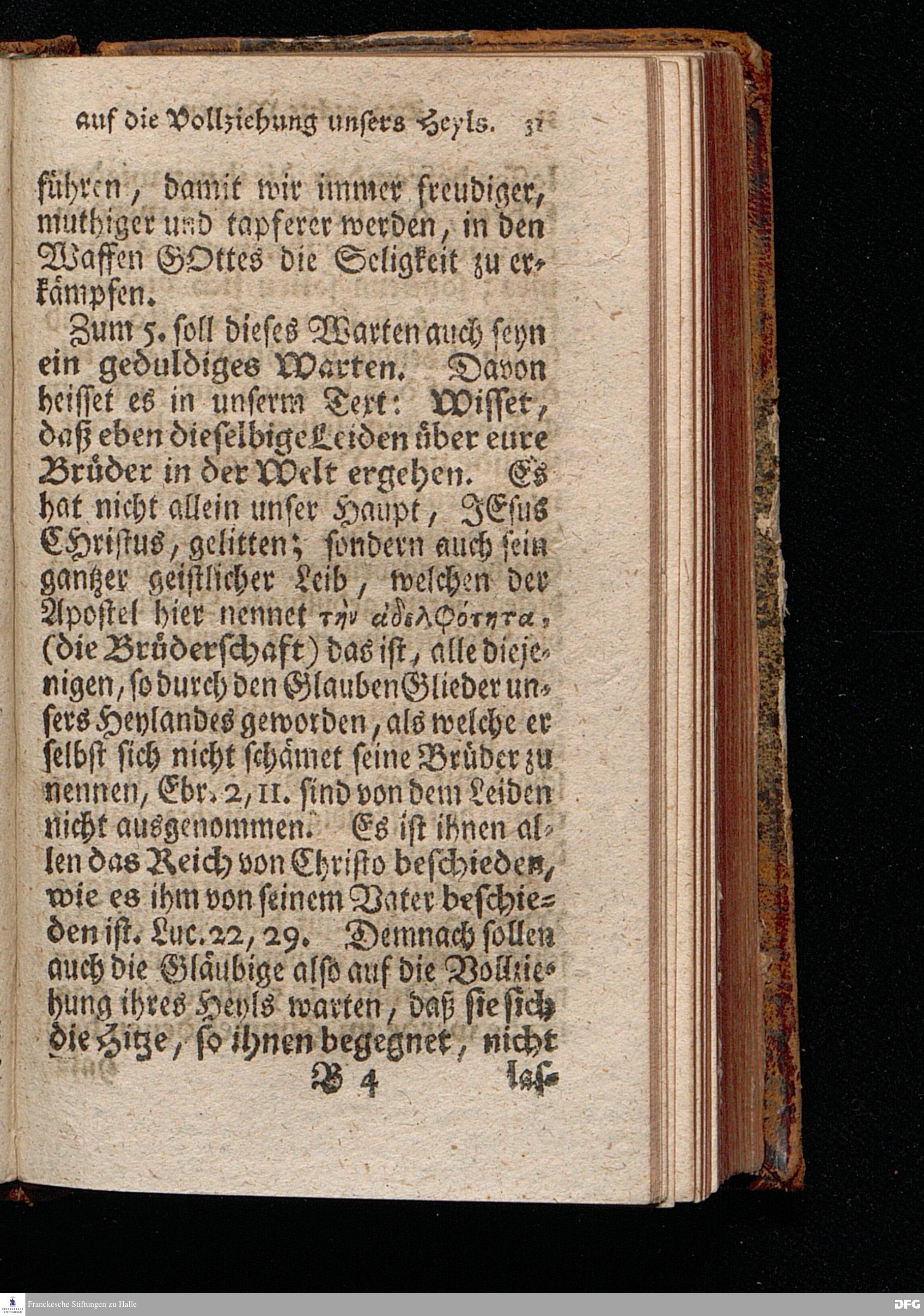 Das Rechte Warten Auf die Vollziehung Unsers Heyls / Aus 1.Petr.5, 6=12. Am III.Sonntag nach Trinit. 1714. Zu Halle in der Schul=Kirche vorgestellet von August Hermann Francken / S.Theol.Prof.Ord.& Past. Andere Auflage. HALLE, zu finden im Wäysenhause. 1731.