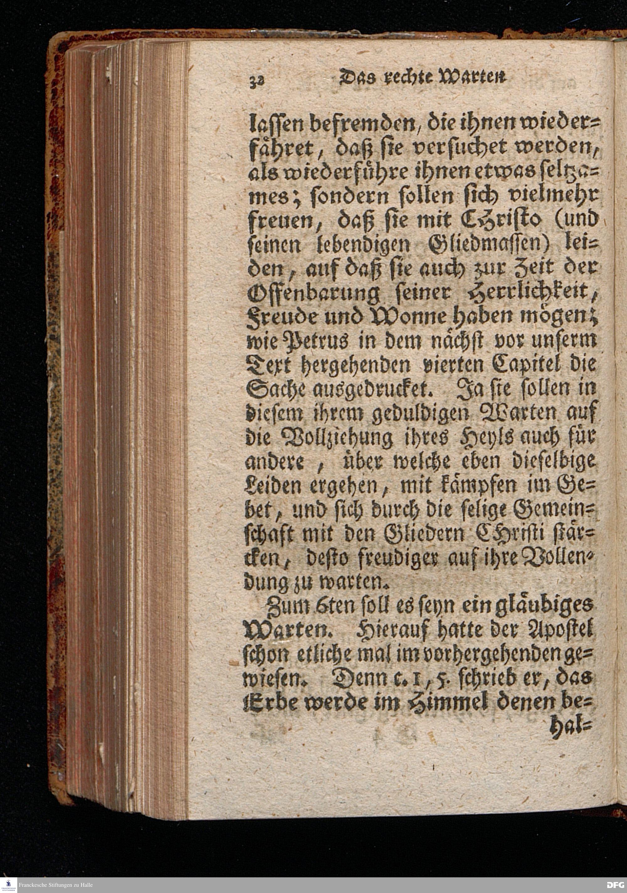 Das Rechte Warten Auf die Vollziehung Unsers Heyls / Aus 1.Petr.5, 6=12. Am III.Sonntag nach Trinit. 1714. Zu Halle in der Schul=Kirche vorgestellet von August Hermann Francken / S.Theol.Prof.Ord.& Past. Andere Auflage. HALLE, zu finden im Wäysenhause. 1731.
