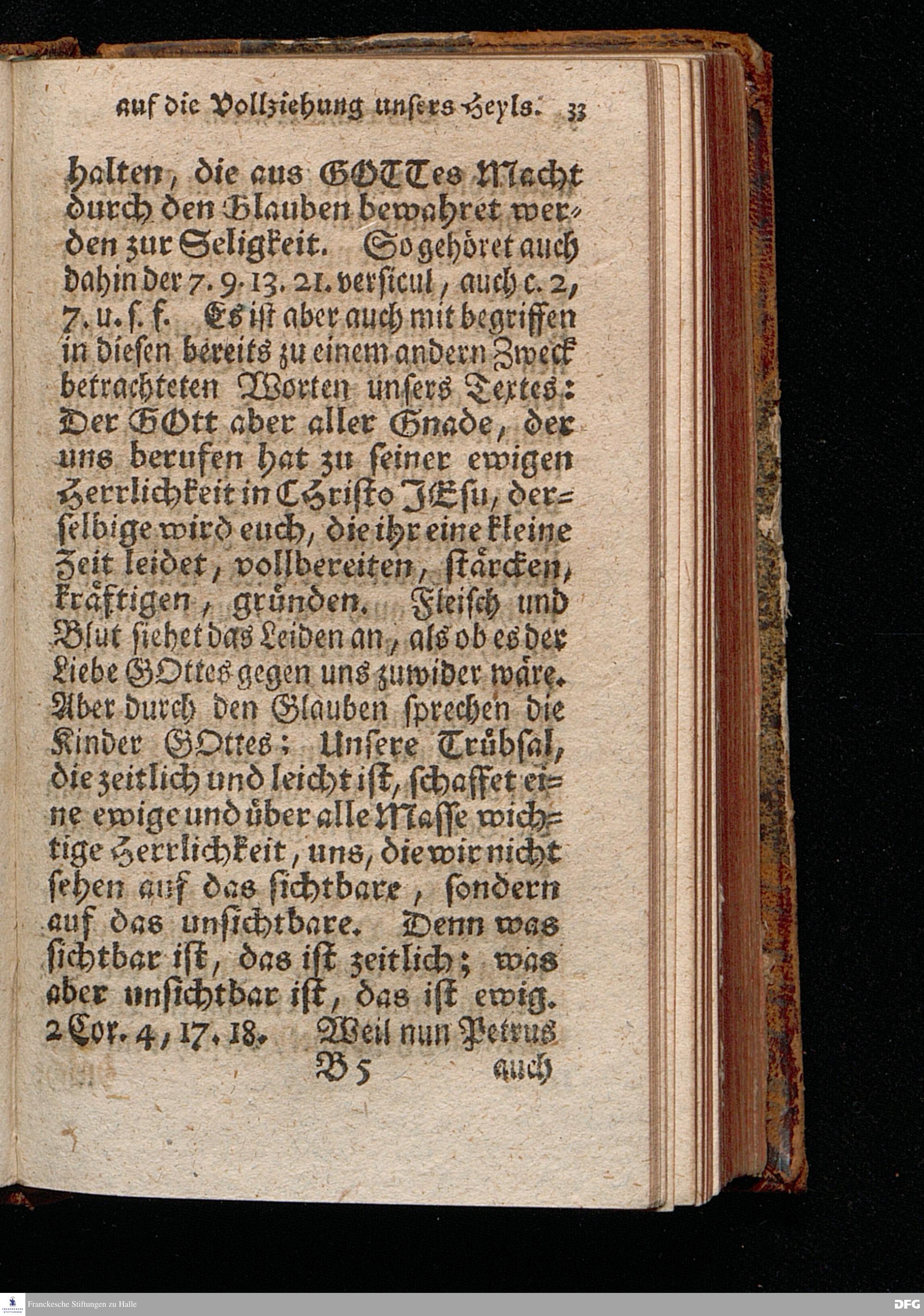 Das Rechte Warten Auf die Vollziehung Unsers Heyls / Aus 1.Petr.5, 6=12. Am III.Sonntag nach Trinit. 1714. Zu Halle in der Schul=Kirche vorgestellet von August Hermann Francken / S.Theol.Prof.Ord.& Past. Andere Auflage. HALLE, zu finden im Wäysenhause. 1731.