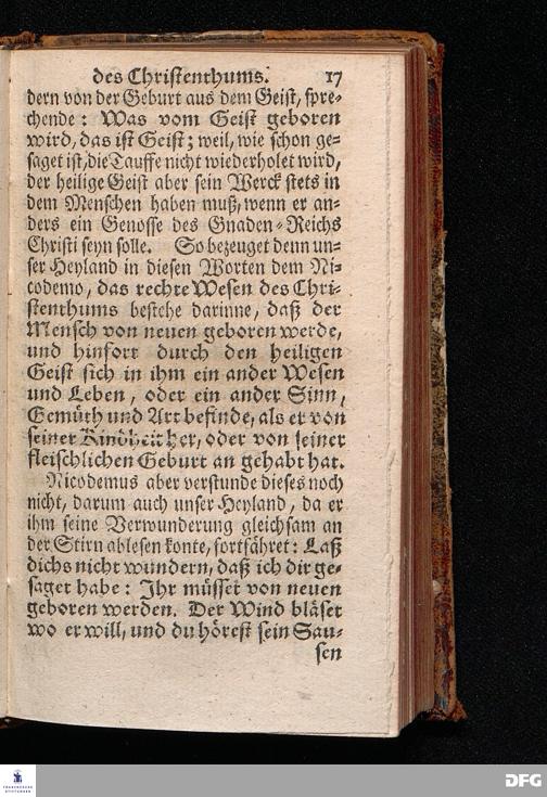 Das Rechte Wesen Des Christenthums, Aus dem Evangelischen Text Joh.III, 1-15. Am Fest der H.Dreyeinigkeit 1714. In der St.Georgen=Kirche zu Glaucha an Halle vorgestellet von August Hermann Francken / S.Theol.Prof.Ord.& Past. Andere Auflage. HALLE / In Verlegung des Wäysen=Hauses. 1729.