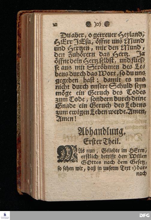 Der Wille Gottes nach dem Gesetz und nach dem Evangelio, Am 18.Sonntage nach Trinit. 1717. aus dem ordentlichen Evangelischen Text Matth.XX [vielm.XXII!], 34=46. in einer zu Hachenburg auf dem Westerwalde bey damaliger Reise auf der Hoch=Gräflichen Herrschaft Verlangen gehaltenen Predigt vorgestellet von August Hermann Francken / S.Th.Prof.Past.Ulric.& Gymn.Schol. Andere Auflage. HALLE, Gedruckt im Wäysen=Hause. 1738.