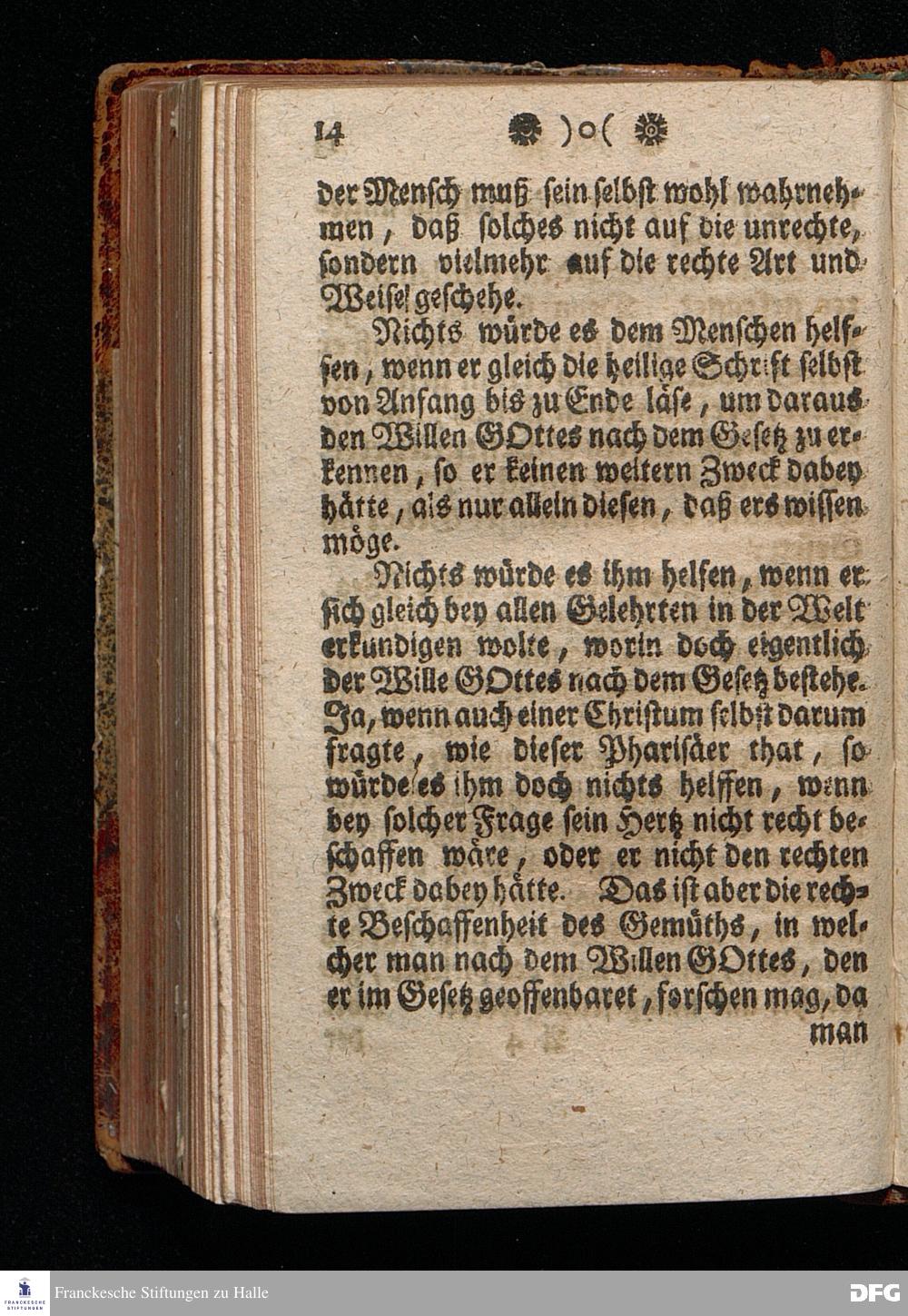Der Wille Gottes nach dem Gesetz und nach dem Evangelio, Am 18.Sonntage nach Trinit. 1717. aus dem ordentlichen Evangelischen Text Matth.XX [vielm.XXII!], 34=46. in einer zu Hachenburg auf dem Westerwalde bey damaliger Reise auf der Hoch=Gräflichen Herrschaft Verlangen gehaltenen Predigt vorgestellet von August Hermann Francken / S.Th.Prof.Past.Ulric.& Gymn.Schol. Andere Auflage. HALLE, Gedruckt im Wäysen=Hause. 1738.