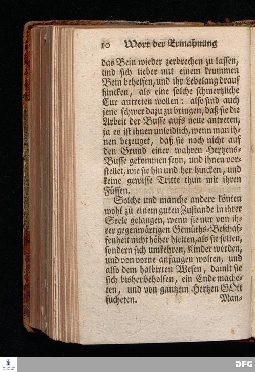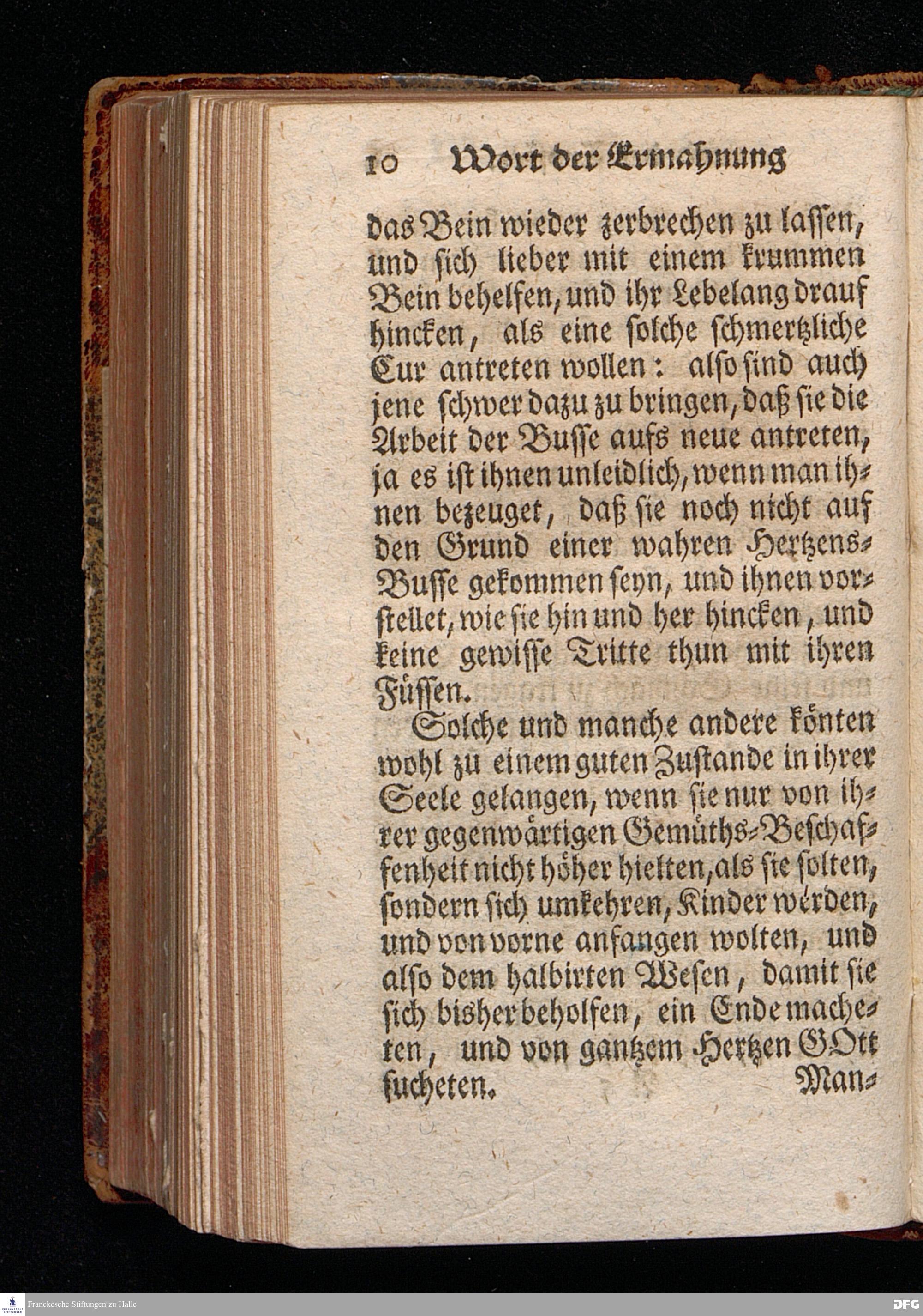 Ein Wort der Ermahnung und des Trostes, An Die in einer namhaften Stadt befindliche GOtt suchende und GOtt liebende, oder doch von der Warheit, die in Christo JEsuist[!], wenigstens einiger Massen, Uberzeugete Seelen, aus Christlichem Wohlmeynen, nach einigen Aufenthalt daselbst, abgelassen aus Halle den 7.Jan.1710. von August Hermann Francken. [Bibelzitat.] HALLE, In Verlegung des Wäysenhauses.