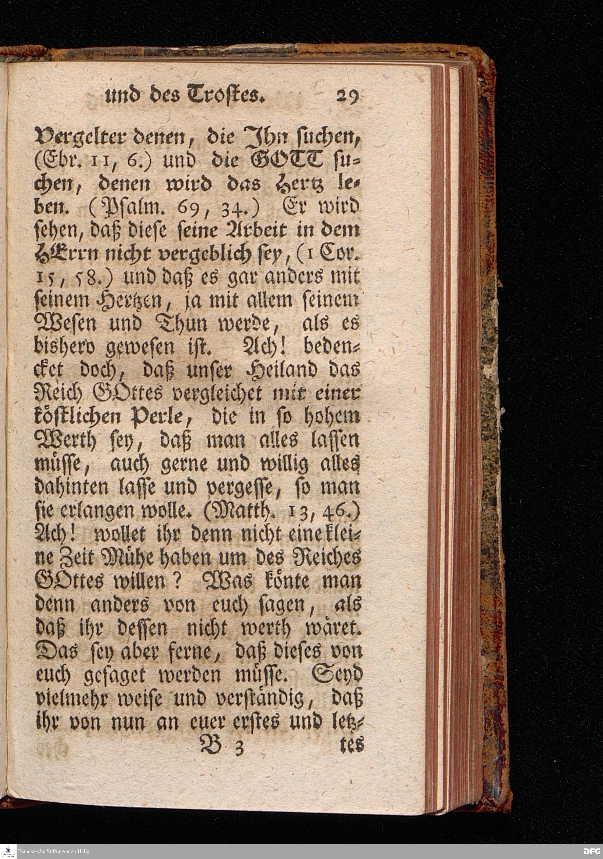 Ein Wort der Ermahnung und des Trostes, An Die in einer namhaften Stadt befindliche GOtt suchende und GOtt liebende, oder doch von der Warheit, die in Christo JEsuist[!], wenigstens einiger Massen, Uberzeugete Seelen, aus Christlichem Wohlmeynen, nach einigen Aufenthalt daselbst, abgelassen aus Halle den 7.Jan.1710. von August Hermann Francken. [Bibelzitat.] HALLE, In Verlegung des Wäysenhauses.