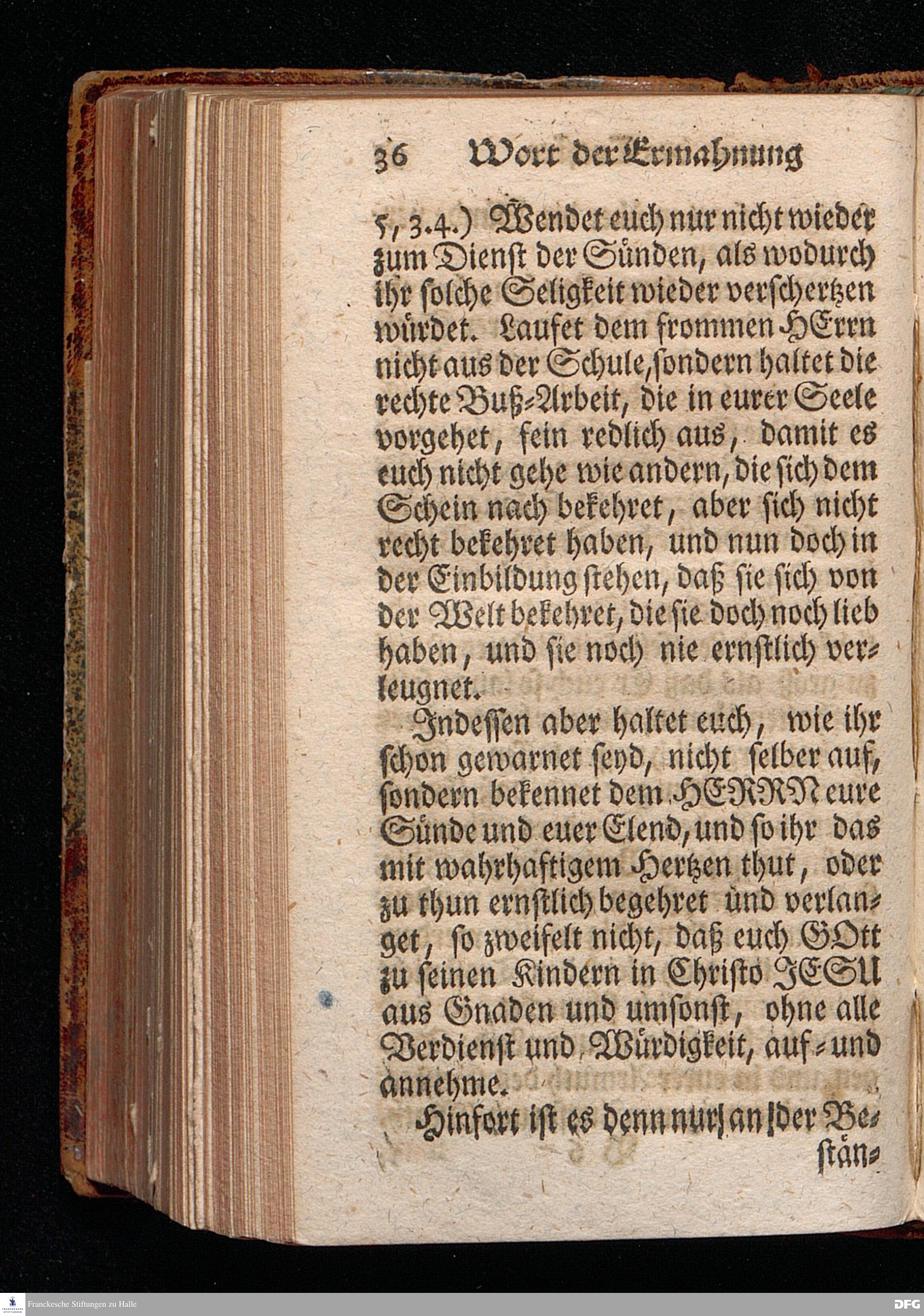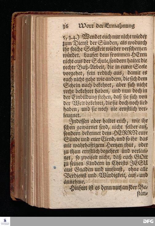 Ein Wort der Ermahnung und des Trostes, An Die in einer namhaften Stadt befindliche GOtt suchende und GOtt liebende, oder doch von der Warheit, die in Christo JEsuist[!], wenigstens einiger Massen, Uberzeugete Seelen, aus Christlichem Wohlmeynen, nach einigen Aufenthalt daselbst, abgelassen aus Halle den 7.Jan.1710. von August Hermann Francken. [Bibelzitat.] HALLE, In Verlegung des Wäysenhauses.