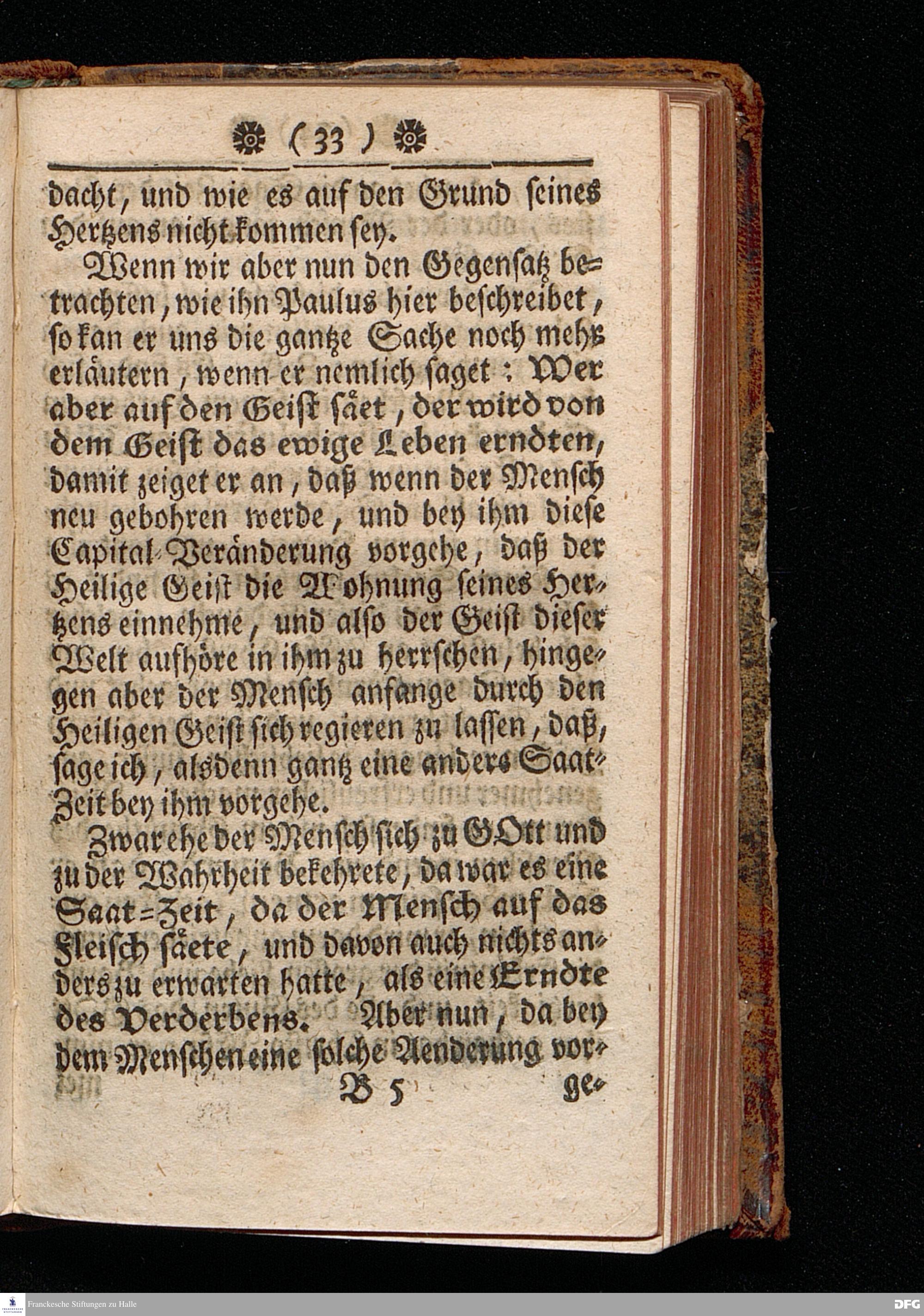 Das Zeitliche Leben als eine Saat=Zeit / In einer Predigt über Galat.VI, 7.8. Am XV.Sonntage nach Trinit. Anno 1709. In der Schul=Kirche zu Halle / vorgestellet von Aug.Herrm.[!] Francken / S.Th.Prof.Ord.und Past. Dritte Auflage. HALLE, In Verlegung des Wäysenhauses. MDCCXXIX.
