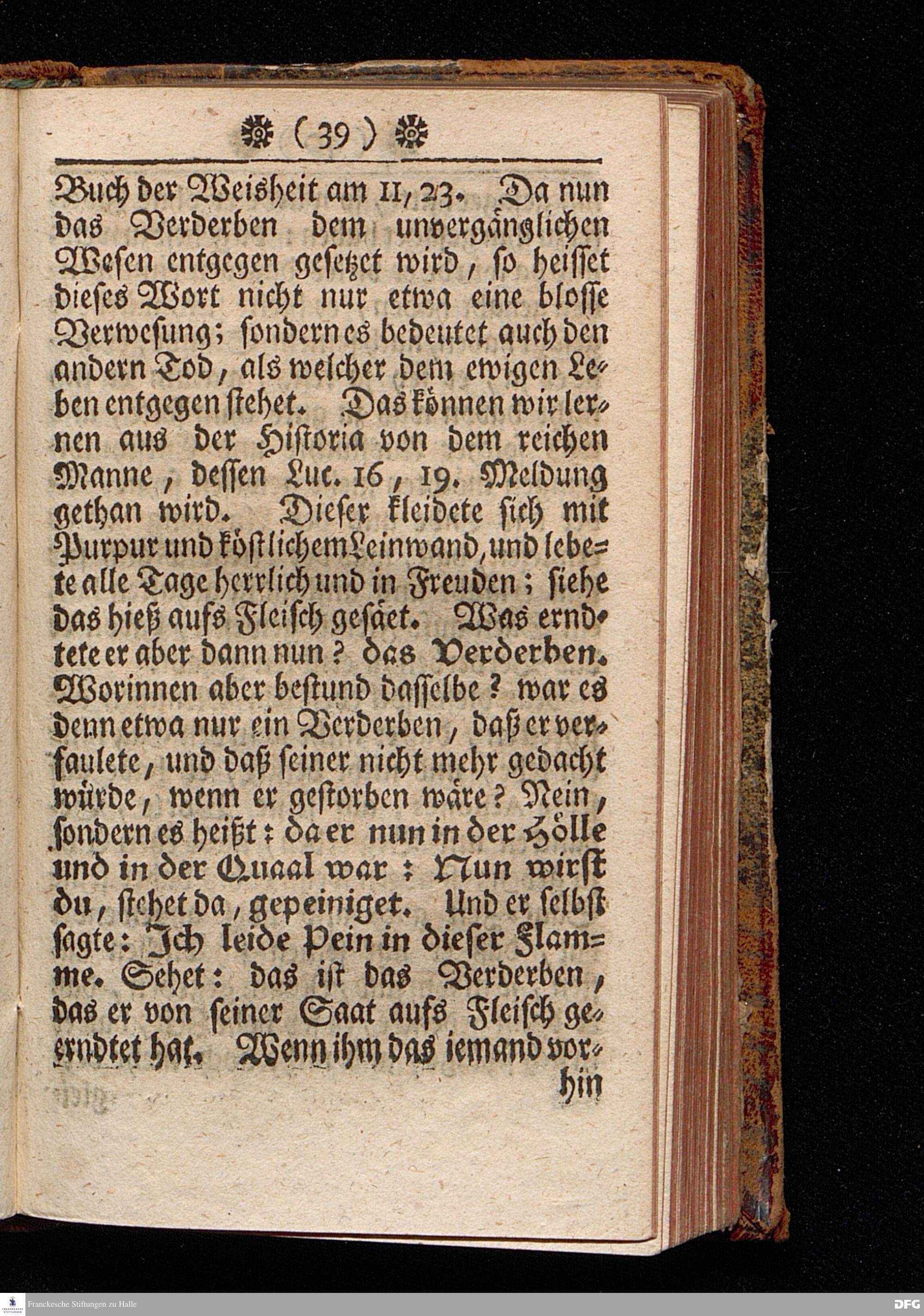 Das Zeitliche Leben als eine Saat=Zeit / In einer Predigt über Galat.VI, 7.8. Am XV.Sonntage nach Trinit. Anno 1709. In der Schul=Kirche zu Halle / vorgestellet von Aug.Herrm.[!] Francken / S.Th.Prof.Ord.und Past. Dritte Auflage. HALLE, In Verlegung des Wäysenhauses. MDCCXXIX.