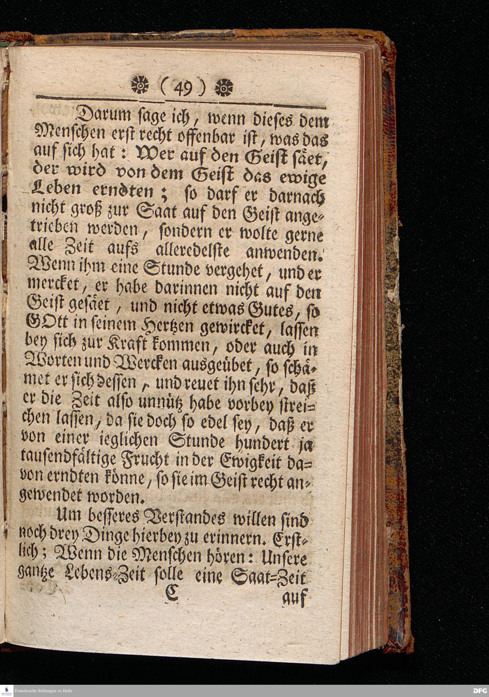 Das Zeitliche Leben als eine Saat=Zeit / In einer Predigt über Galat.VI, 7.8. Am XV.Sonntage nach Trinit. Anno 1709. In der Schul=Kirche zu Halle / vorgestellet von Aug.Herrm.[!] Francken / S.Th.Prof.Ord.und Past. Dritte Auflage. HALLE, In Verlegung des Wäysenhauses. MDCCXXIX.
