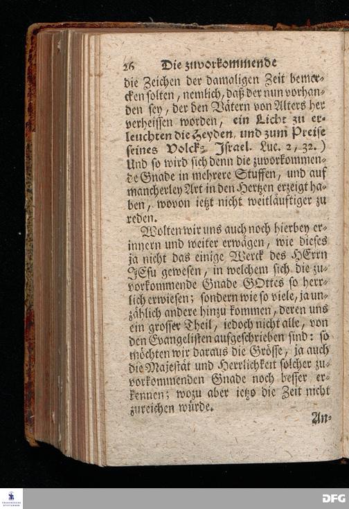Die Zuvorkommende Gnade GOttes, In einer Vor dem hier versammleten Hoch=Fürstl.Dessauischen Regiment am XVI.Sonntag nach Trinit.1721. gehaltenen Predigt aus dem ordentlichen Evangelio Luc.VII, 11-17. In der Schul=Kirche zu Halle vorgestellet von August Hermann Francken, S.Theol.Prof.Past.Vlr.& Schol. HALLE, gedruckt im Wäysen=Hause, 1729.